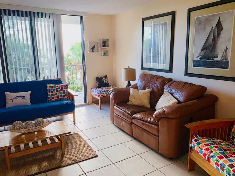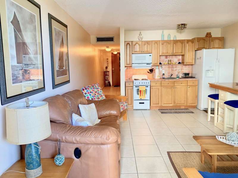 Converted updated 1 BR 1 BA from original efficiency unit with impact glass sliding doors and all tile flooring. Perfectly cozy living space has everything you need to enjoy the Atriums oceanfront location in the town of PB Shores. Living area has leather sofa and futon bed for guests plus dining area for 4. TVs in Great Room + Bedroom. Full Size Bed in BR. Assigned Open Parking #130 North. Enjoy the large heated pool, BBQ picnic area, private beach access across arched seagrape lined pathway to wide sandy stable PB Shores beaches. Beach chair service available. Walk to PB Shores life guarded beach & town clubhouse events. This lovely walking town features marinas, waterfront dining and shopping. You will love LIFE at the Atrium in the charming beachfront community of Palm Beach Shore