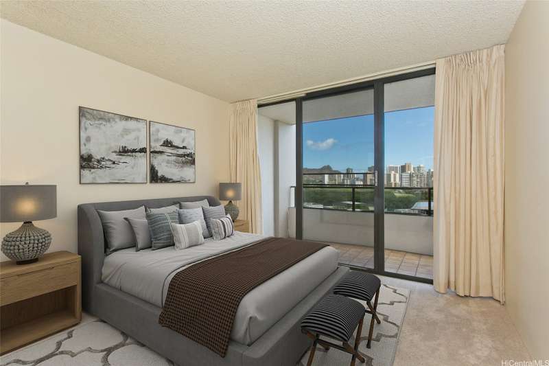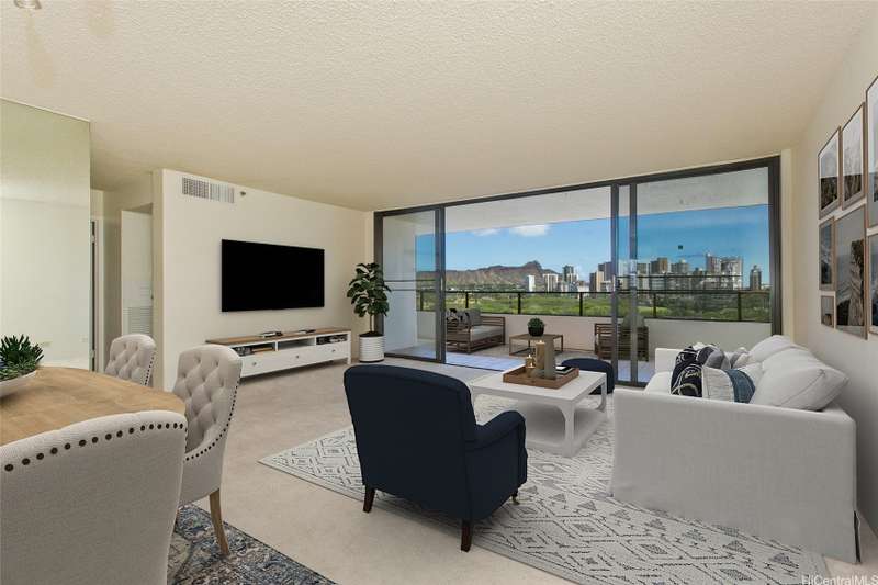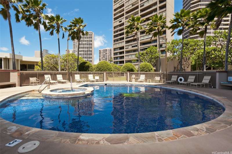 TWO (2) secured covered parking stalls - Preferred ’01’ corner unit s. Unit also features two usable covered lanais with unostructed Diamond Head and City views and a kitchen window for additional light and ventilation. Total of 4 units per floor, Maintenance fees include: Electricity, Cable TV, Hot Water, Internet Service, Sewer and Water. Building is 100% insured; Original construction included fire sprinklers. Original drain pipes replaced. Close proximity to Waikiki, the University of Hawai‘i at Manoa, and Downtown. Central AC, and Pet Friendly. 1st covered parking situated in basement level, other is situated on the 4th floor parking structure.