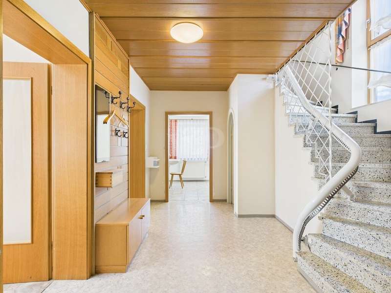 Fulfill your dream of a detached house with a wonderfully large garden plot in a beautiful residential area! Spacious detached house with two full storeys, attic, full basement, terrace, balcony, a garage with tool shed, a double garage and a wonderfully large garden plot in a beautiful residential area of Lenting. On the first floor of the house with a total of approx. 116 m² of living space and approx. 614 m² of land is the living room with terrace access, a comfortable eat-in kitchen, a room for working as well as a WC and a storage room / pantry. A bright, open, daylight staircase leads from the living area on the first floor to the bedrooms on the upper floor with a master bedroom including balcony, a larger children's room and another small room for a child to play or guests. There is also a bathroom with natural light on this floor as well as a further storage room and access to the attic via a pull-down staircase. The house has a full basement with a covered external cellar staircase and offers plenty of additional space with its fully tiled cellar rooms. In addition to a large heated utility room, there is also a heated hobby cellar, a storage room and the cellar room with heating and tank. As a special feature, the property has two garages. The garage with tool shed from the original year of construction is located at the rear of the property and can be used as storage space for garden tools, bicycles, etc., but of course also as a garage for cars, motorcycles or trailers. Later, around 1996, a further double garage with a roof peak was built in the entrance area of the property. In this way, vehicles with a convenient driveway can be comfortably parked protected from wind and weather.