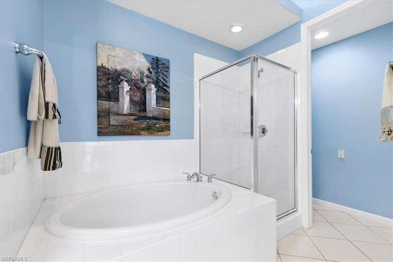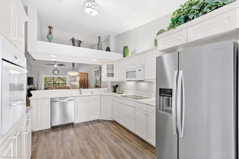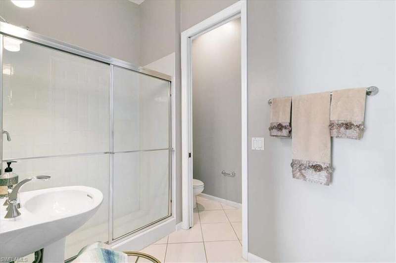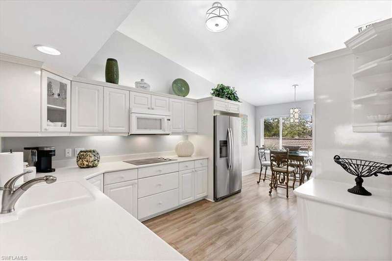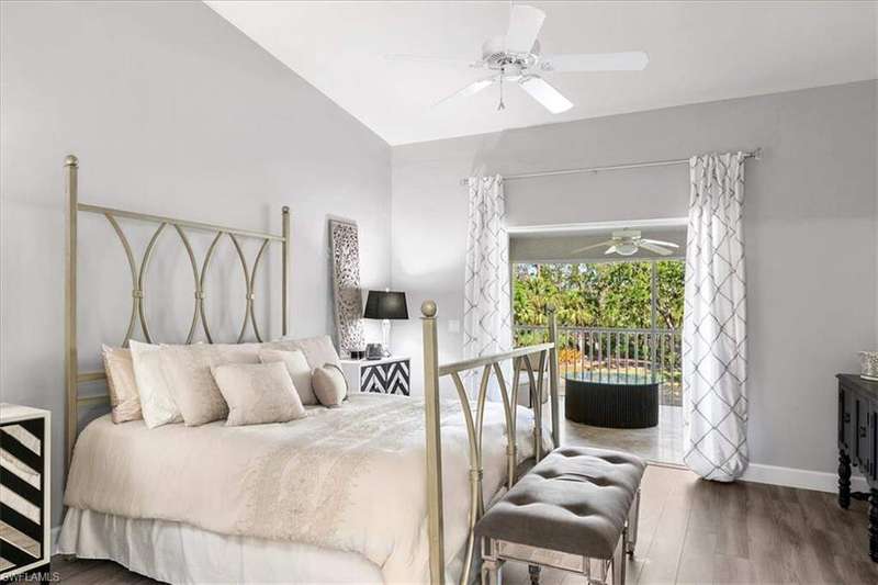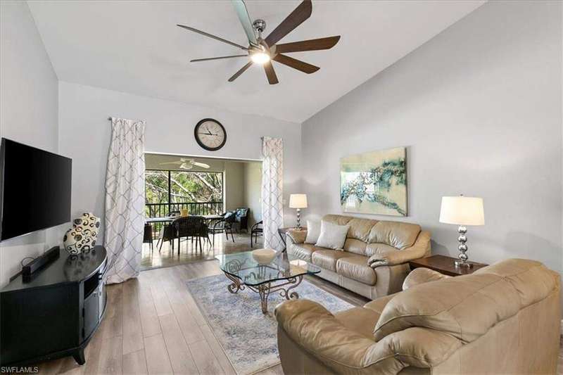 A perfect balance of comfort and luxury awaits in this beautifully turnkey furnished 2-bedroom, 2-bath condo nestled within Falling Waters North Preserve-a serene, boutique community ideally situated west of US-41. Perched on the second floor for enhanced privacy and soaring cathedral ceilings, this residence feels open, airy, and grand-bathed in natural light streaming through French doors and generous windows. The open-concept living and dining area flows seamlessly into a sleek eat-in kitchen, ideal for entertaining or quiet evenings at home. Pocketing sliders open to an expansive screened lanai that spans the full length of the condo. Here, tranquil woodland and fountain views create an idyllic backdrop for morning coffee or al fresco dining. The primary suite is a true retreat, offering private lanai access, a spacious walk-in closet, dual sinks, a vanity area, a deep soaking tub, and a glass-enclosed shower. The guest suite provides equal comfort and privacy, ensuring every visitor feels at home. Enjoy resort-style relaxation at the lagoon-shaped community pool, surrounded by lush tropical landscaping-a perfect spot to bask in the Florida sunshine. Located just minutes from Vanderbilt Beach, Mercato, and Coconut Point, this exceptional residence offers the coveted west-of-41 lifestyle: tranquil, elegant, and close to everything Naples has to offer. Live the Florida dream in style-where every day feels like a getaway.