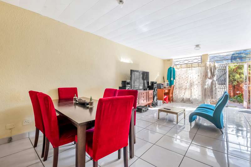 Enter through your private entrance, leading to a garden. Into the house where a spacious open plan lounge and dining awaits. The separate kitchen has space for under counter appliance. Off the kitchen, you are welcome by a courtyard leading to communal area, a nice garden and swimming pool. Upstairs 3 spacious bedrooms and a full bathroom welcome you. A bit of TLC will get you the home you deserve.