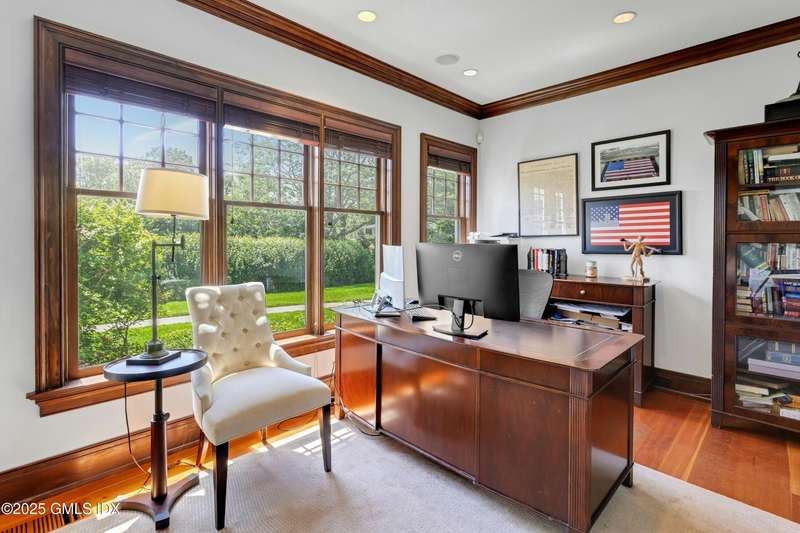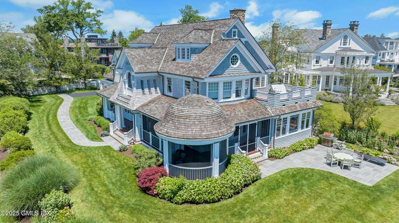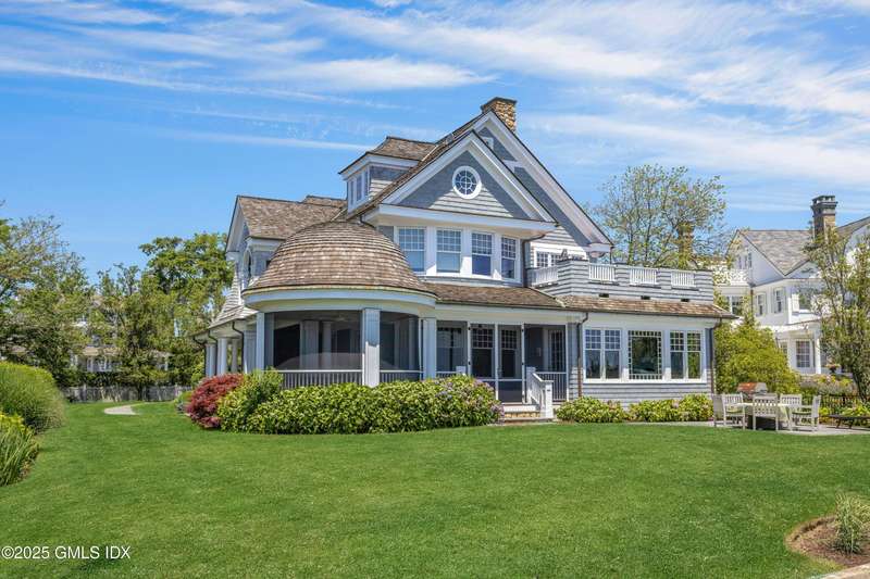 Spectacular Waterfront Living in Lucas Point! Wake up to breathtaking sunrise views of Long Island Sound from this stunning Nantucket-style coastal retreat, nestled in the heart of sought-after Lucas Point. Just a short stroll to the private association beach, boat dock, and iconic Tod's Point, this home is your gateway to the ultimate Greenwich lifestyle. Thoughtfully designed for both relaxed living and grand entertaining, this home features expansive wraparound porches—perfect for summer gatherings, sunset cocktails, or cozy family evenings. Inside, a sun-filled open-concept kitchen and family room seamlessly flow into elegant formal living spaces and a private home office. A charming butler's pantry and an additional study room off the kitchen add both function and flexibility. Upstairs, the luxurious primary suite boasts a private deck with panoramic water views your personal sanctuary, with heated bathroom floors and steam room shower. Four additional spacious bedrooms, a laundry room, and a versatile bonus room (ideal as a second office or media room) offer comfort and convenience for every member of the household. A covered breezeway connects to the two-car garage, enhancing both curb appeal and year-round practicality. Recent upgrades include refreshed driveways, decks, and walkways. Plus, newly approved private dock application and pending pool application promise even more potential to personalize this dream home. Don't miss this rare opportunity to own waterfront in one of Greenwich's most coveted coastal neighborhoods!