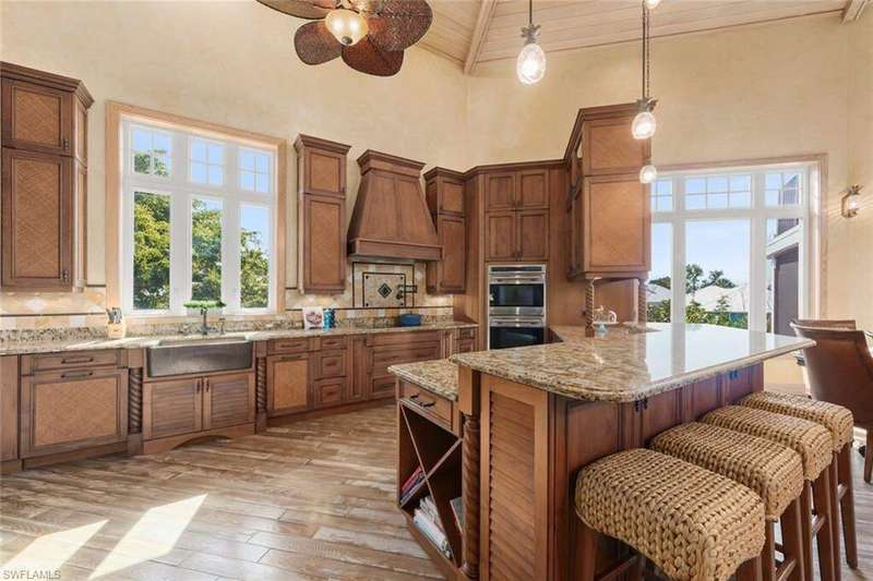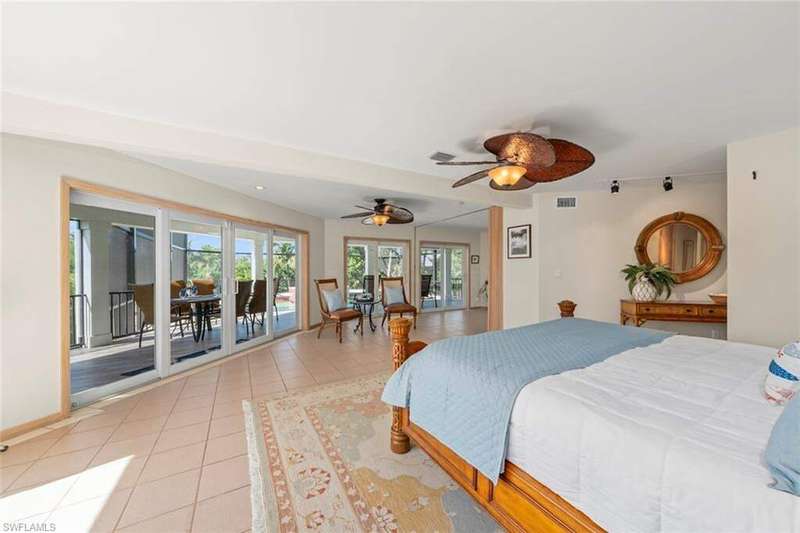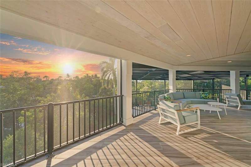 Discover a breathtaking waterfront estate where architectural artistry meets coastal serenity. Designed by acclaimed architect Joseph St. Cyr, this timeless residence rests on a private, lush half-acre in the coveted Del Sega community, that appeals to Boater and Beach enthusiasts alike. Superior boating access, boat to the Bay in minutes and also just steps away from world renowned shelling beaches. Nearby Captiva offers vibrant restaurants, and charming local shops. A grand sense of arrival greets you the moment you step inside. The expansive foyer unfolds with an elegant open staircase and a convenient three-story elevator, setting the tone for the thoughtful design found throughout the four-level home. Sunlight pours into the main living area, where vaulted, wood-beamed ceilings and rich red oak floors create a warm, inviting atmosphere. The open layout seamlessly connects a chef-inspired kitchen to the spacious family room anchored by a cozy wood-burning fireplace. The kitchen is a dream for culinary enthusiasts, boasting custom cabinetry, abundant storage, granite surfaces, and top-tier built-ins. A Sub-Zero refrigerator and freezer, Wolf convection ovens, warming drawer, and induction cooktop offer professional performance. The center island elevates both entertaining and everyday living with a built-in ice maker, refrigerator drawers, and wine cooler. Impact windows and sliding doors line the home, opening to a spectacular multi-level screened lanai that captures panoramic views of tropical landscaping, the sparkling pool, and the rejuvenating spa. Ascend to the top deck to feel the gulf breezes wash over you as you unwind with sunset views and glimpses of the Gulf of Mexico. With over 250 feet of waterfront along intersecting, direct-access canals, this estate is a haven for boating enthusiasts. A stunning Ipe wood dock and a 12,000-lb boat lift make days on the water effortlessly accessible. This extraordinary home blends refined luxury with the relaxed beauty of coastal living, offering a rare opportunity to own a signature waterfront retreat in one of Sanibel's most desirable enclaves.
