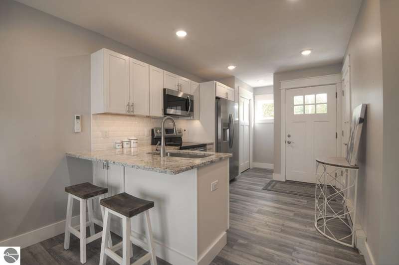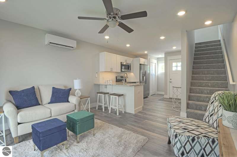 Carefree living lifestyle in downtown Traverse City on desirable Eighth Street. Take advantage of 1 bedroom, 1 bath condo located walking/biking distance to Civic Center, Bryant Park, NMC and so much more. This bright & cheerful unit offers, nice kitchen layout with granite c/tops, Frigidaire stainless appliances included, nice living area with access to rear patio. Upper level features, laundry area with stack able washer and dryer included. Large primary bedroom, Full bath with granite c/tops. Complete with air conditioning. Enjoy in-town living at its best!