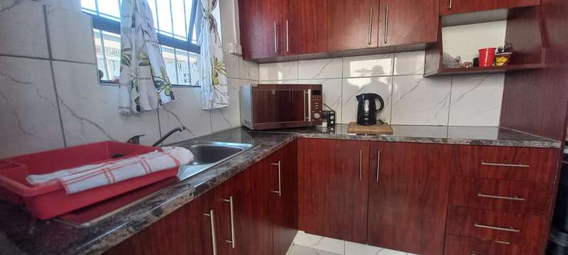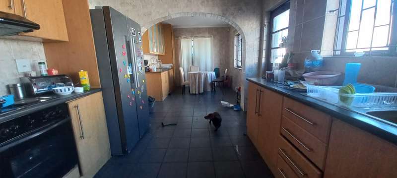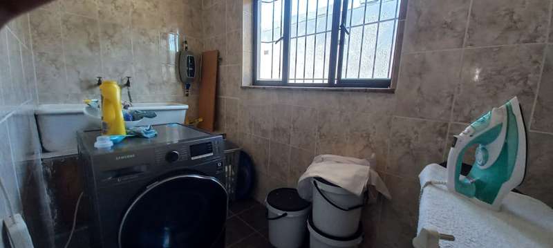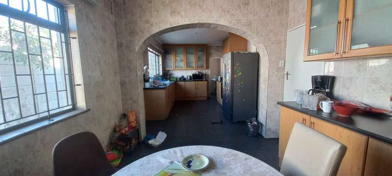 Large family home with ample space and income bearing flatlet. The main house has three bedrooms , all with built-in cupboards. Spacious living room with functioning fireplace for the coming winter months. Parquet floors adorn the house throughout. Fully fitted kitchen with oven and extractor. Large enough to enjoy family meals in comfort. The kitchen leads to a separate laundry room. The house has one family bathroom and a separate toilet. The flatlet consists of a single room , kitchenette and bathroom with shower, toilet and basin. The large erf gives enough space to park at least 12 cars behind security gates. The garage is open at both ends and can accommodate a single vehicle when closed and three more when opened up. A great opportunity for a family to grow in or an investor to rent. For a viewing, please do not hesitate to contact me.