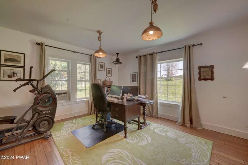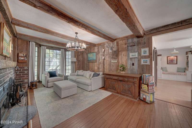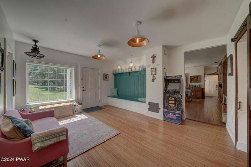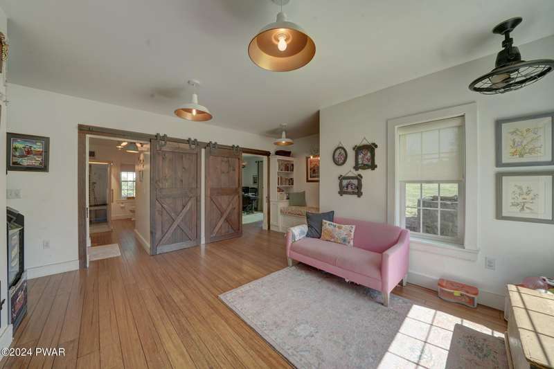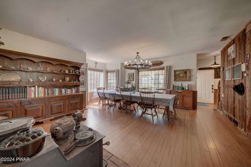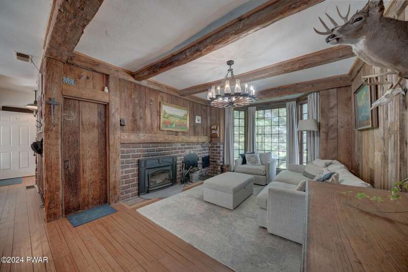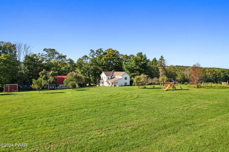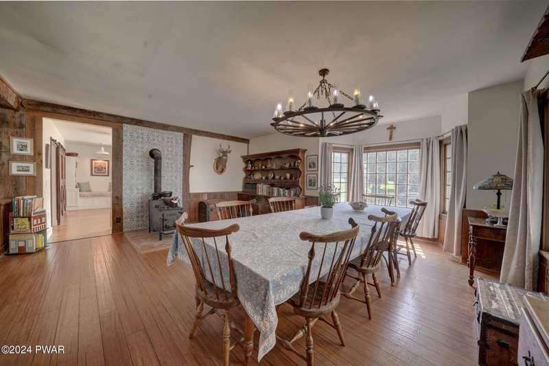 MODERN FARMHOUSE ON 175 ACRES Discover your own slice of paradise on this 175-acre property with a beautifully updated modern farmhouse. This charming 5-bedroom, 3-bath home features a bright, airy kitchen and a spacious living room/dining room area with a fireplace--perfect for relaxing evenings. The spacious entryway leads into a home with new windows, a stone-coated steel roof, and stylish bamboo flooring. Enjoy the blend of open fields and wooded areas, with a gentle stream running through the land. There's plenty of space for your animals with fenced pastures and a variety of fruit trees including over 30 wild blueberry bushes to enjoy. A detached 2-car garage/barn adds practicality to this serene setting. Embrace the perfect mix of modern comfort and natural beauty.
