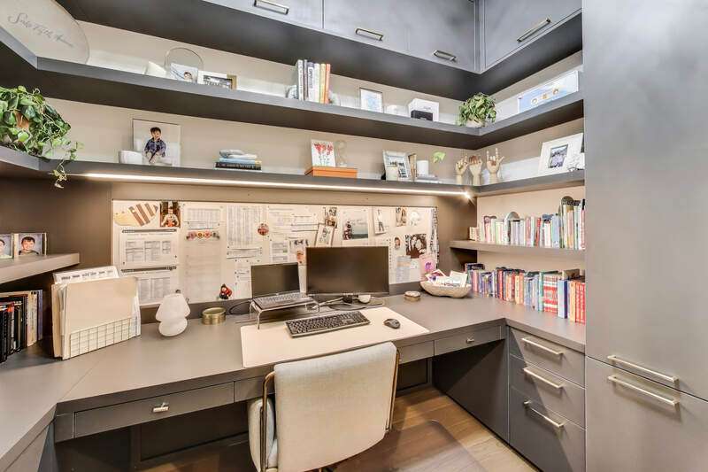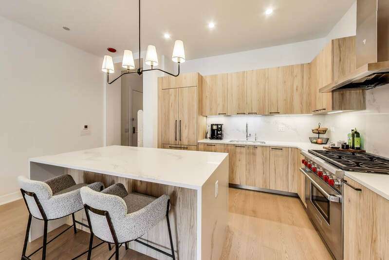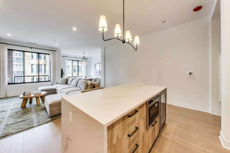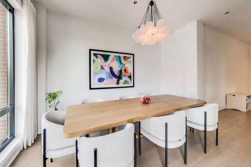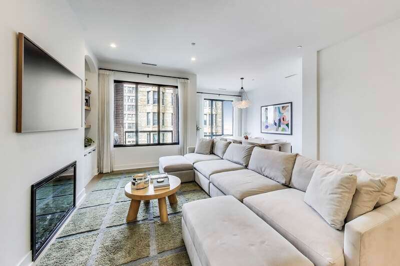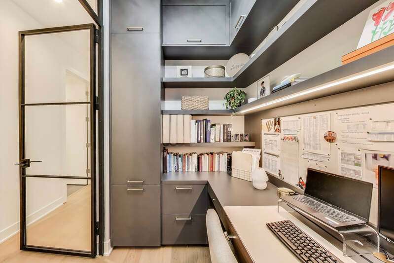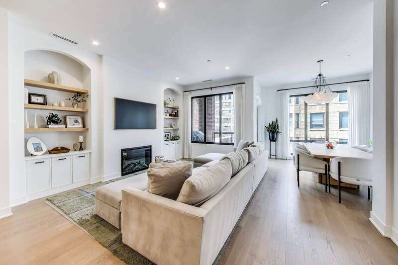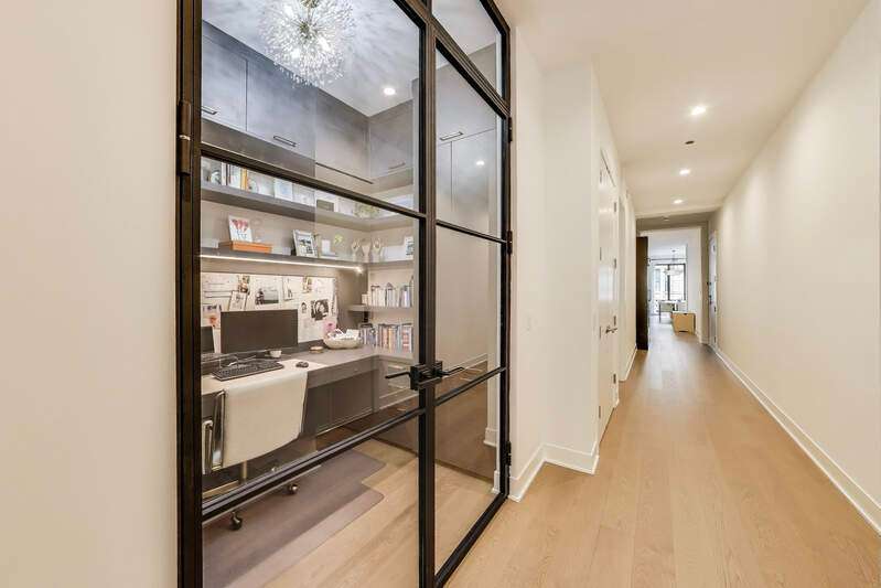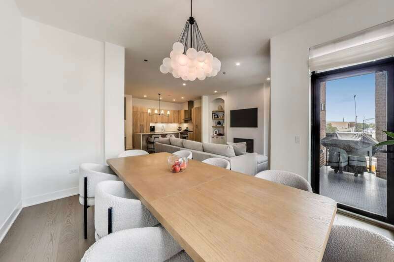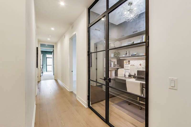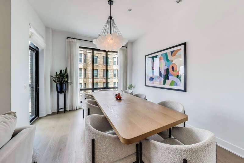 Elevated luxury meets unparalleled craftsmanship in this stunning, like-new Belgravia 3 bed plus a den, 3 bath residence, perfectly situated in the heart of Chicago's vibrant West Loop. This expansive 2,160+ sq ft corner condo welcomes you with soaring 9-foot ceilings and floor-to-ceiling windows that flood the space with natural light, highlighting beautiful wide plank oak hardwood floors flowing seamlessly through the formal dining room, expansive living room, and chef's kitchen. The kitchen is a true showstopper, featuring custom Melamine Patrae cabinetry, quartz countertops throughout-including a dramatic waterfall island-full-height backsplash, and top-tier Bosch stainless steel appliances, including a 36" paneled French door refrigerator with bottom freezer, under-cabinet lighting, a built custom pantry, a built-in wine fridge integrated into the kitchen island, premium Wolf stove/oven combo, and a Franke Ambient kitchen faucet. Retreat to the expansive primary suite featuring two large walk-in closets, a spa-like bathroom with dual vanities, upgraded quartz counters, an oversized walk-in shower with bench and trendy hexagon tile, a separate water closet, and a private balcony. Two additional spacious bedrooms with en suite bathrooms and ample closet space. A custom built fully enclosed den/office provides an ideal workspace for remote days or study. Every upgrade in this unit reflects the highest level offered by the developer, totaling over $189,000 in premium upgrades. Personal touches include custom closets crafted by Chicagoland Home Products, elegant living room built-ins, a fully built out office, an entry cabinet, custom drapes by Everhem, and blinds by Blinds Gallery, Grohe handheld showers in all three bathrooms. Thoughtful details such as canned lighting throughout living and bedrooms, J boxes for future tech in every room enhance comfort and convenience. Additional finishes include an LG washer/dryer (purchased end of 2022) with side-by-side units set on stylish tile flooring in spacious laundry room. This exceptional home offers two private outdoor spaces perfect for entertaining or unwinding, plus one heated garage parking space for $30,000. Residents enjoy access to a fully equipped fitness center, meeting room, bike storage, secure video entry, and package rooms. Gas and hot water are included in the HOA. Perfectly positioned just steps from Mary Bartelme Park, the West Loop's renowned Fulton Market restaurant row, Whole Foods, Mariano's, Target with a full grocery store next door, Greektown, boutique shops, and with effortless access to the Blue Line and 290 expressway, this residence combines luxury and convenience. Located within the highly sought-after Skinner School District. Healthy building reserves, no current or planned special assessments, no rental restrictions. This home represents a rare opportunity to live in West Loop's finest.