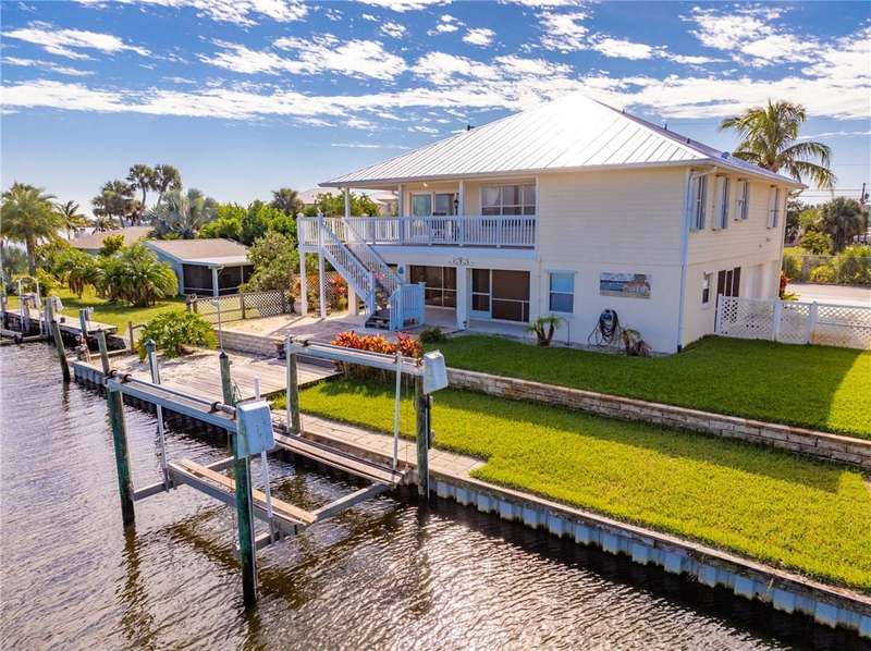 Welcome to a Lifetime of Majestic Intracoastal Views! This breathtaking waterfront retreat is a dream come true for boaters, anglers & nature lovers alike. Elegant 3BR/3BA open-concept design embraces soothing river breezes, magical sunrises & a covered balcony with impact slidersseamlessly blending indoor/outdoor Florida paradise living. Watch dolphins, manatees & tropical birds drift by. Two docks (one with lift) offer endless aquatic adventure. 2-car courtyard garage (room for 3rd) + huge flex roomperfect 4th BR, studio, gym, or media haven. Peaceful, charming neighborhood!