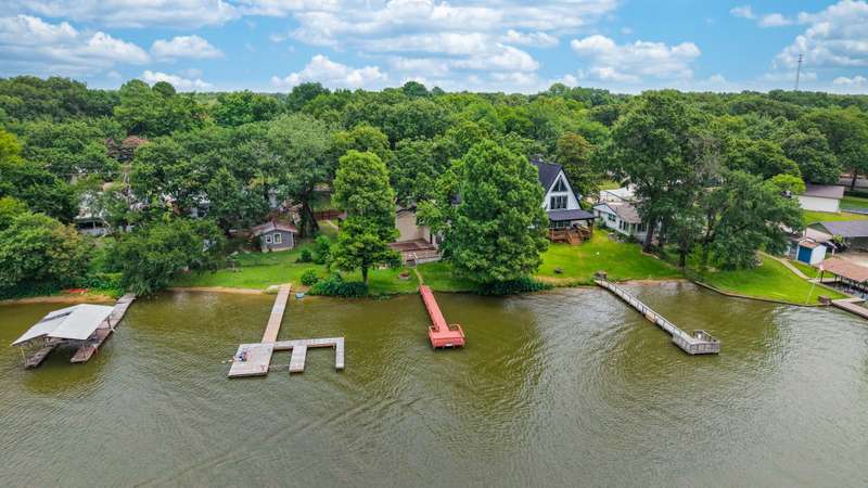 Fishermans Retreat on a Peaceful Cove. This charming lakefront getaway captures the relaxed spirit of lakeside living perfectly situated on a wide, calm cove in Gun Barrel City. Cast a line from your private pier, tie up the boat for the weekend, or unwind in the screened gazebo after a day on the water. Just minutes from shopping, dining, and essentials, its an easy escape that still keeps you close to convenience.Designed with comfort and functionality in mind, the home offers a spacious layout with two living areas including a light-filled waterside room that opens to a large deck, ideal for gathering with friends and family. The primary suite features a walk-in closet and a full bath with a tile-surround tub shower combo, and recessed lighting adds a warm, updated feel throughout.Move in ready with recent upgrades including new flooring, paint, granite countertops, and fresh kitchen cabinetry. A concrete driveway and metal storage building with roll up door provide ample space for lake toys, fishing gear, or lawn equipment. Just around the corner from the Pier 334 Project which is said to feature a boutique Hilton Tapestry Hotel, a marina, a splash park, an amphitheater, and various dining and entertainment. The property is the perfect spot to unplug, unwind, and enjoy the simple pleasures of lakeside living.