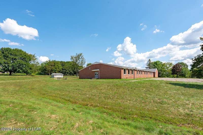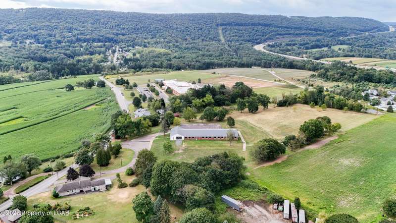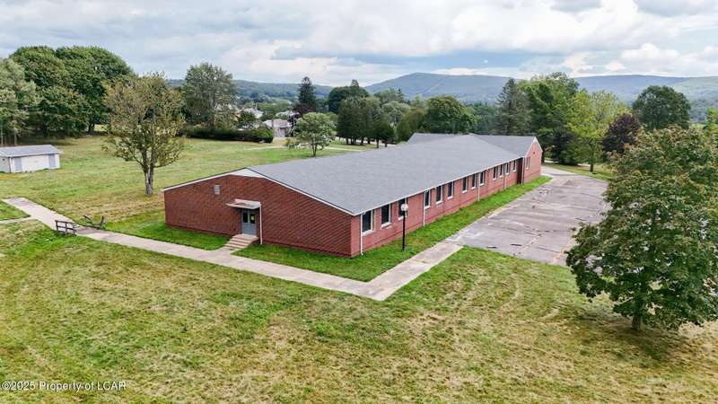 Rare opportunity & ready to go!! Approximately 8 acres near Drums Elementary School. Parcel w/former 12,000 sq. ft. school building zoned MRB, many uses allowed including multi-family dwellings, other parcels zoned SR allow single & 2 family dwellings. New roof on building. 16' x 9' high garage door w/opener. 1000 gallon underground LP tank new 2024. Beautiful country setting & views.