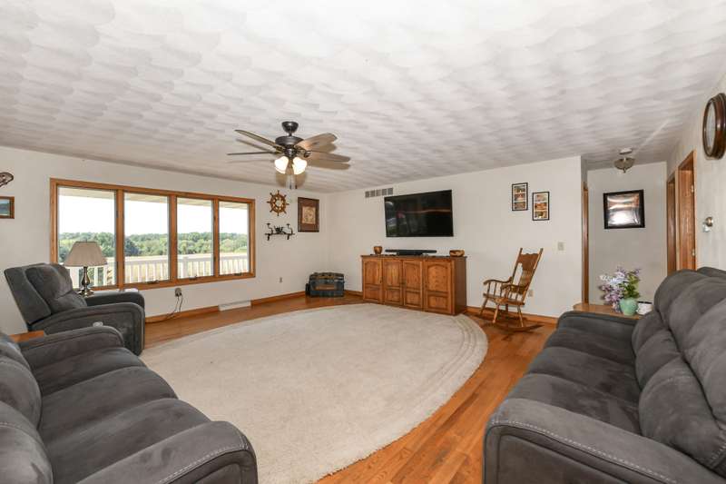 EXCEPTIONAL COUNTRY ESTATE on 7.5 ACRES with 4 WELL-EQUIPED OUTBUILDINGS, TILLABLE LAND and UNMATCHED VIEWS. The spacious 3 bedroom, 3.5 bath RANCH HOME with walk-out lower level offers beautiful wood flooring throughout, central vacuum system indoors and irrigation system outdoors. You find spectacular views from every room in the house including the generous primary suite with access to the wrap-around deck leading to the screened in porch. Finished lower level has autonomous living quarters with full kitchen, full bath, bedroom and roomy living room area. The 4 unique outbuildings offer various iterations of electric, heat, water and access. This unique property has a tornado shelter, 3 wells, one that services the home; the other 2 provide water to the grounds and outbuildings. This is a MUST SEE!