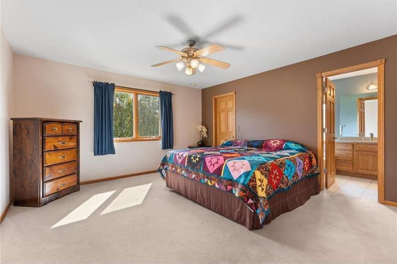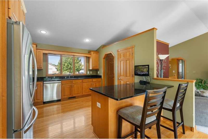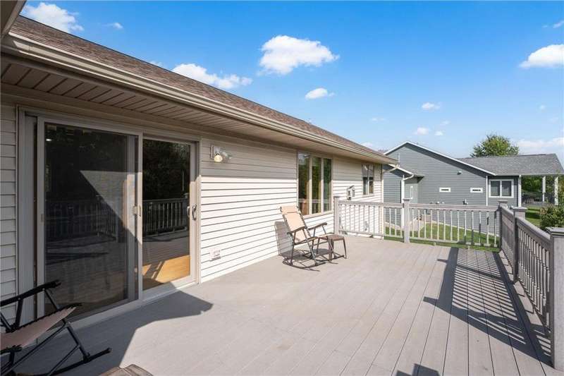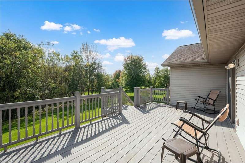 This 5-bedroom, 3-bath walkout ranch offers the best of main floor living on a private 1-acre wooded lot in Whispering Hills. Inside you’ll find vaulted ceilings, hardwood floors, and a cozy fireplace that make the open layout warm and inviting. The kitchen with stainless steel appliances flows beautifully into the dining and living areas, while the main floor laundry keeps life simple. Retreat to the private primary suite with tub, or enjoy evenings on the large composite deck overlooking the trees. A 3-car garage with floor drain, tons of storage, and extras like a sprinkler system and water filtration make this home as functional as it is comfortable.