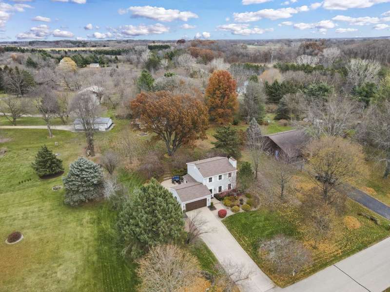 Discover a home that combines modern updates with timeless comfort & everyday functionality! Inside you'll find charming wood floors & 6-panel doors combined with stylish updates like contemporary light fixtures & a shiplap accent wall in the primary bdrm. You'll love the custom coffee bar, closet organizers in each bdrm, & finished LL designed for entertaining with a wood-burning FP & wet bar with custom counter carved from a door at the Monona Terrace. Step outside to your backyard oasis?an expansive 0.71 acre lot with a large paver patio, pond, huge firepit, & an extensive outbuilding with two garage doors for extra storage or a workshop. With a new roof (2025), water heater (2024), septic pump (2023), carpet (2021), fresh paint (2021) & more, this home is truly move-in ready!
