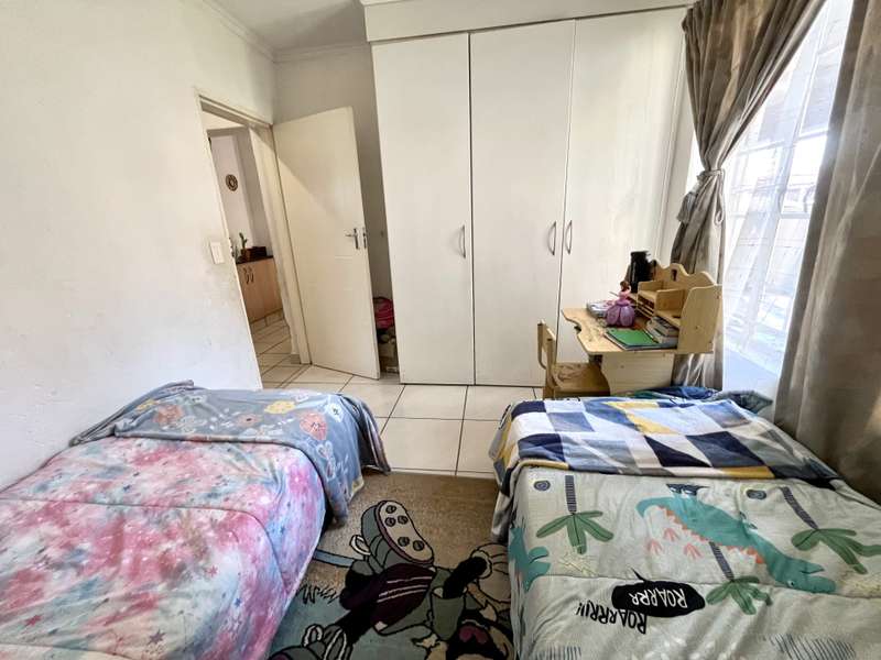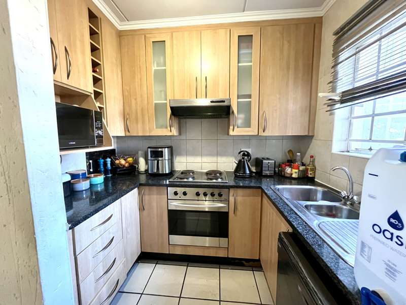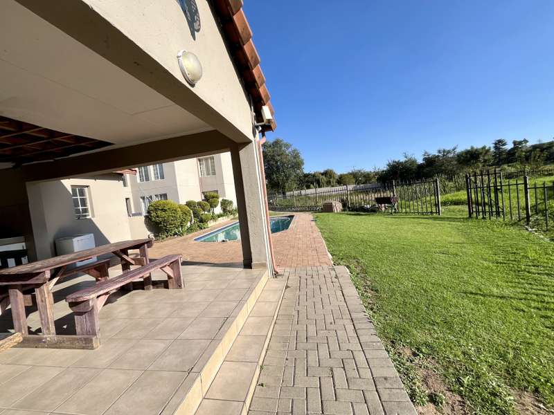 Secure this stunning and spacious ground floor apartment for your family. The property is in a perfect location close to shopping centres , best schools, easy access to public transport including Gautrain bus station, and access to N1 highway is easy. The property is in a secure complex guarded 24/7 by security guards. It is child friendly, with play parks and a communal swimming pool. It boasts an open plan kitchen fitted with modern cupboards, has an electric stove with an undercounter oven. The kitchen opens up to an open lounge which has an exit sliding door to the patio. There's a big private garden where children can play. There's 2 bedrooms with built-in cupboards, and a separate bathroom with a bath tub and a shower. Make a viewing appointment to find out more about this property.