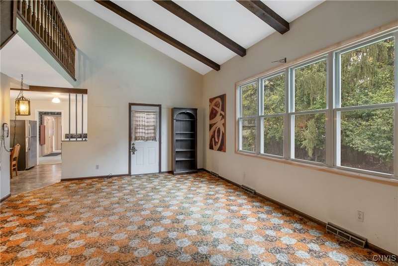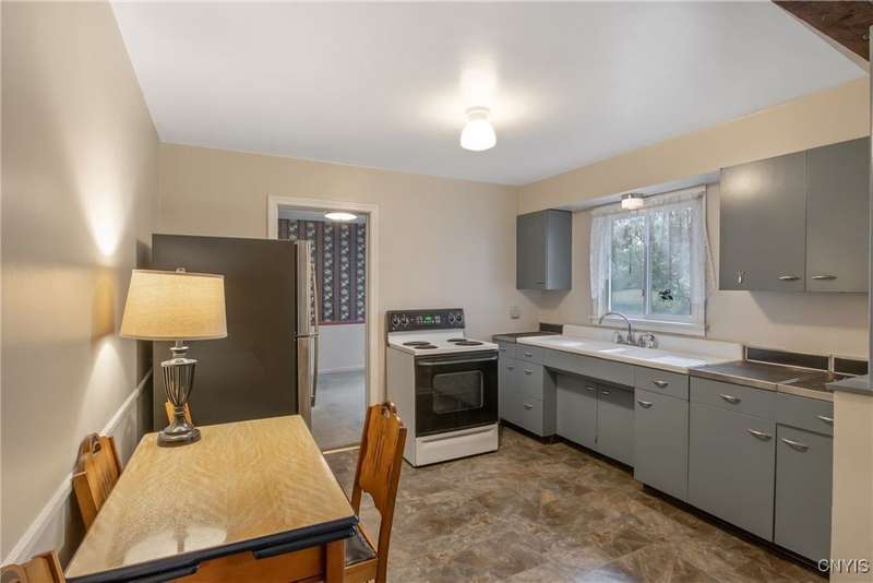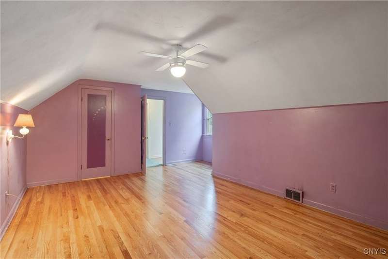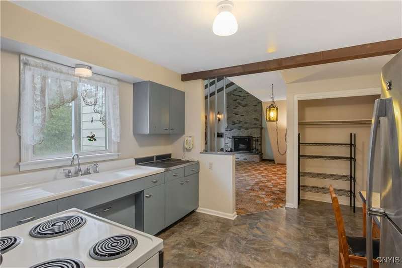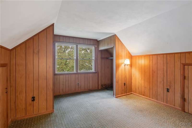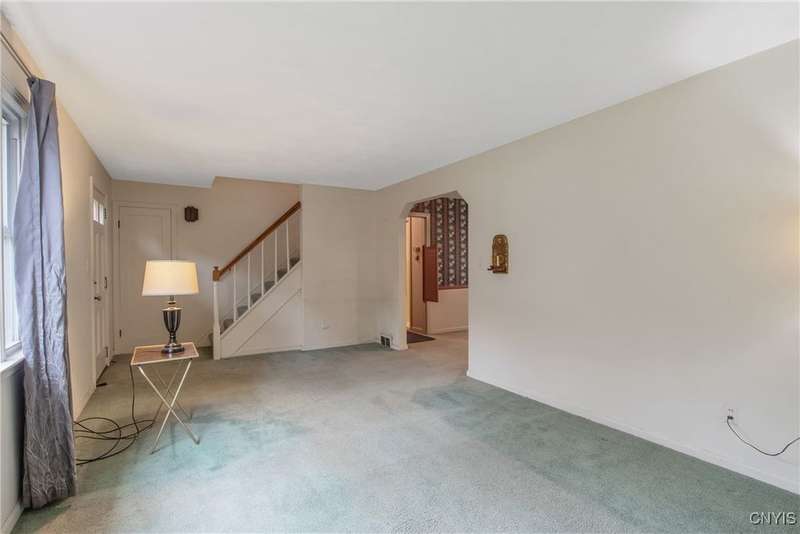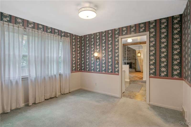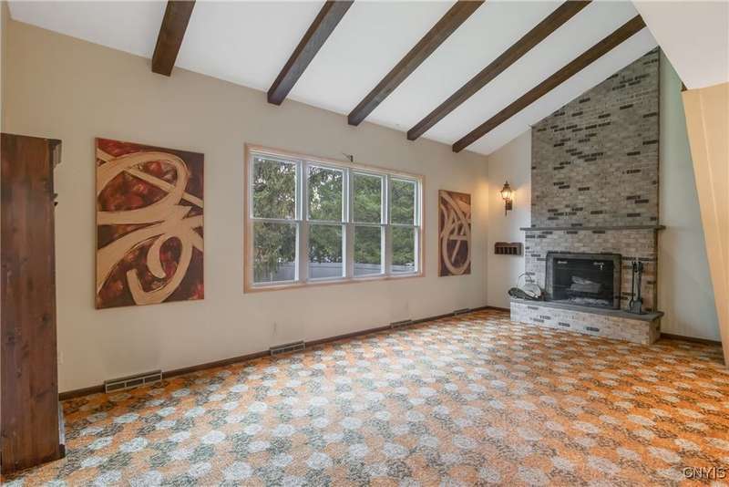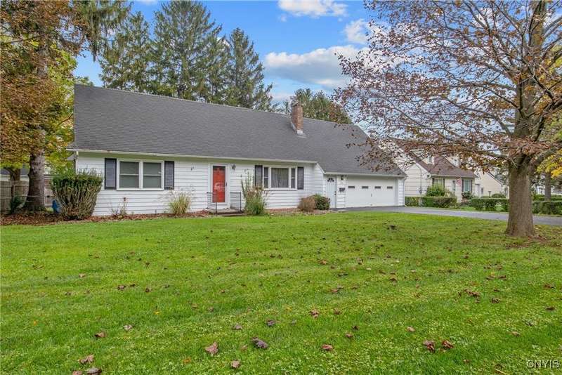 Charming & Classic 5-Bedroom, 2-Bath Cape Cod. This spacious, solidly built home blends timeless charm with exciting potential for modern updates. Inside, you'll find a warm and inviting family room with a striking floor-to-ceiling brick fireplace, vaulted beamed ceilings, newer windows, and a distinctive open staircase leading to the upper-level bedrooms. A convenient door off the family room opens to a generous deck and fully fenced backyard?perfect for entertaining or unwinding. The bright eat-in kitchen features painted cabinetry, updated vinyl tile flooring, an open pantry, and a newer refrigerator. Just off the kitchen is a formal dining room that flows into a comfortable living room with a large picture window that fills the space with natural light. Two main-level bedrooms showcase beautifully refinished hardwood floors, while professionally cleaned carpets are found throughout the rest of the home. (Additional hardwood floors are located beneath the carpeting on the main level.) The full basement offers great storage or expansion opportunities and includes a newer washer, dryer, and furnace. An attached, heated two-car garage and a double wide driveway provide plenty of parking. Ideally located close to shopping, dining, and major highways for easy commuting.