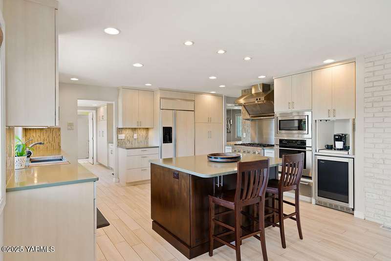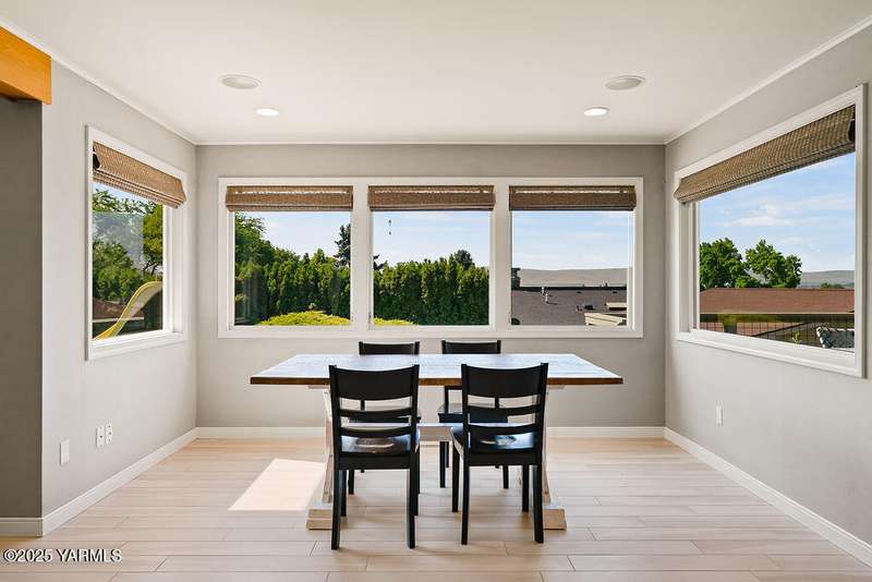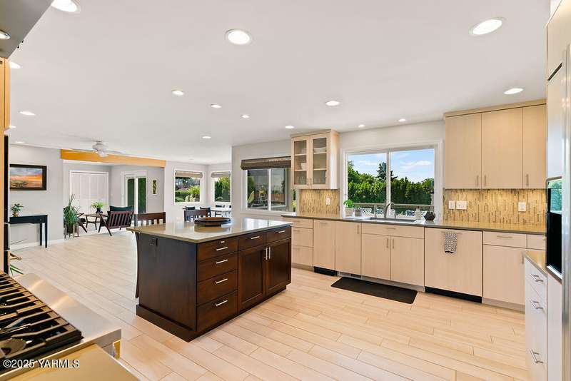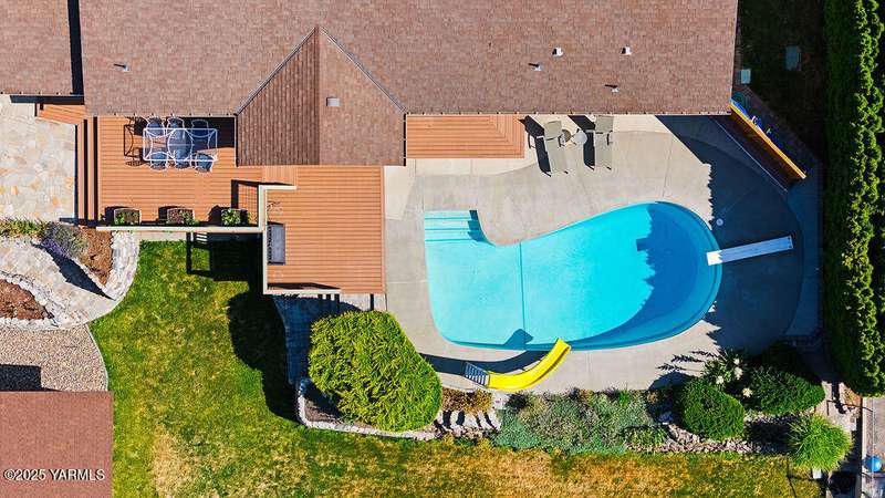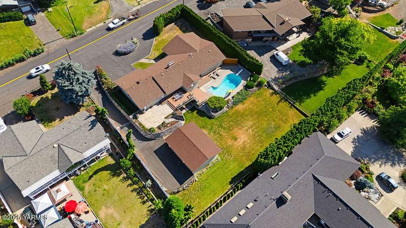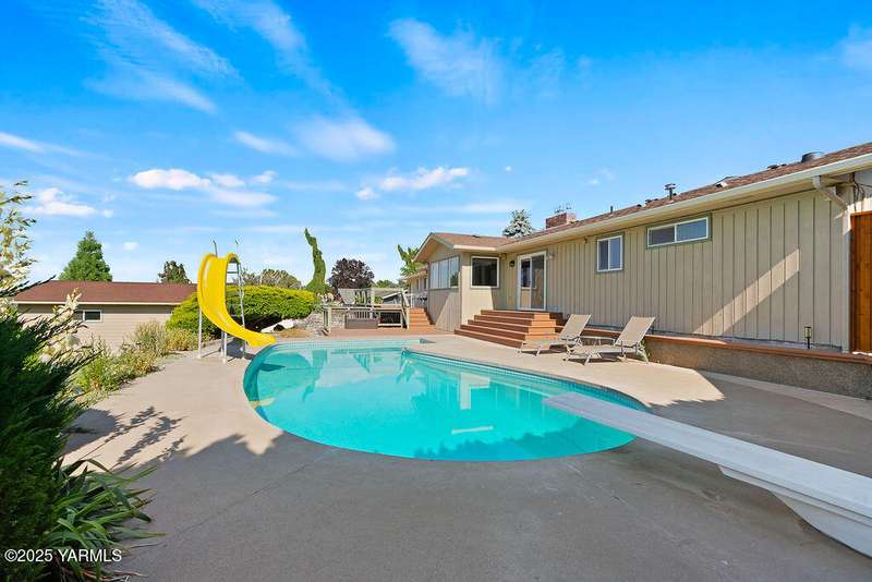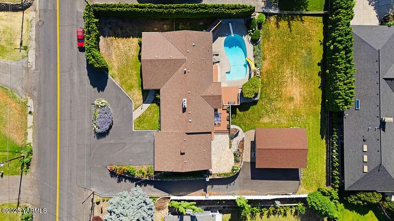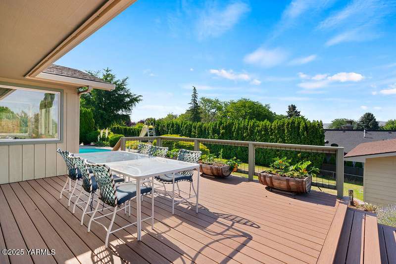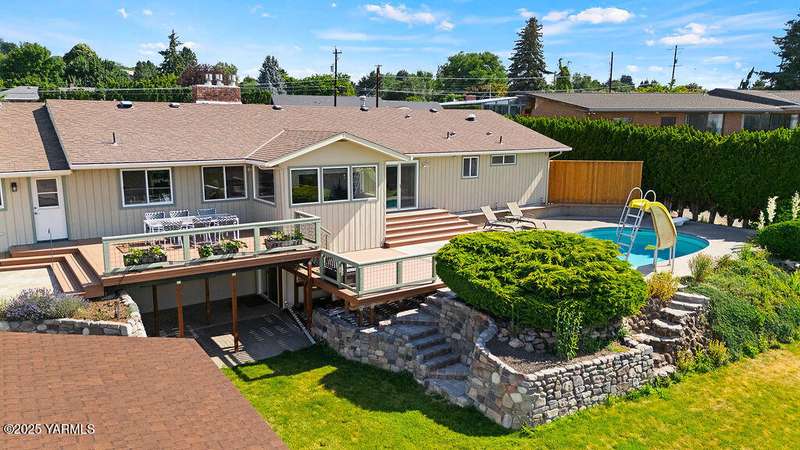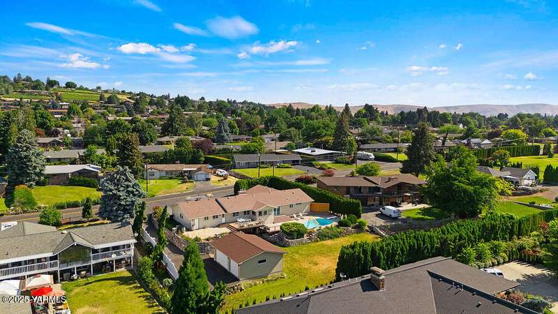 Sweeping views of Mt. Adams and the Yakima Valley set the stage for this stunning 4-bedroom (Potentially 5), 4-bath residence offering over 4,000 sq ft of beautifully designed living space on more than half an acre. From peaceful sunrises to golden sunsets, enjoy panoramic vistas from the kitchen, dining room, laundry room, deck, and much of the backyard--this is Northwest living at its finest. Outside, enjoy the in-ground pool along with newer trex decking, and a spacious backyard. The attached 2-car garage is complemented by a fully finished and insulated detached 3-car shop with WiFi garage doors and a private gated entrance--perfect for additional vehicles, hobbies, or storage, along with RV parking right outside. Thoughtfully updated while retaining its timeless charm, the home welcomes you with elegant tile flooring and a double-sided cozy brick fireplace connecting the warm, inviting living room to the formal dining area. The chef's kitchen is a dream come true: soft-close cabinetry with pull-out storage, a built-in warming lamp, high-performance gas cooktop, a trash compactor, wine refrigerator, full tile backsplash, a large island, and abundant quartz counters--designed for both daily living and elevated entertaining. Additionally, there is a spacious laundry room and ample storage throughout. The expansive primary suite is a luxurious retreat complete with heated bathroom floors, dual vanities, his-and-hers closets, and a custom walk-in shower with triple shower heads, highlighted by an overhead rainfall feature. While the guest bath offers a spa-like experience with a sauna, dual sinks, a separate tub and shower combo, and convenient pool access. The daylight basement offers incredible flexibility with direct backyard access, a cozy gas fireplace, wine cellar, reinforced gun/safe room, bathroom, and a dedicated office/homeschool area with built-ins and utility sink. A finished bonus room adds even more space for a gym, media room, or guest suite.