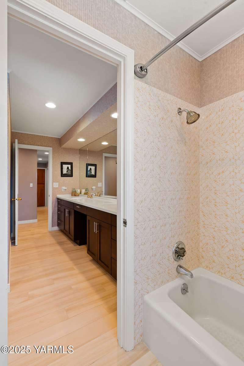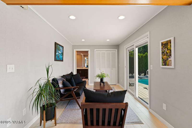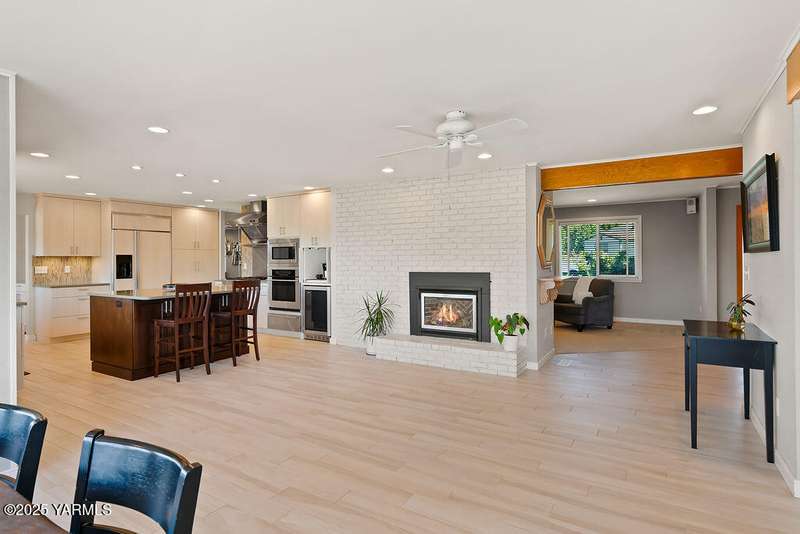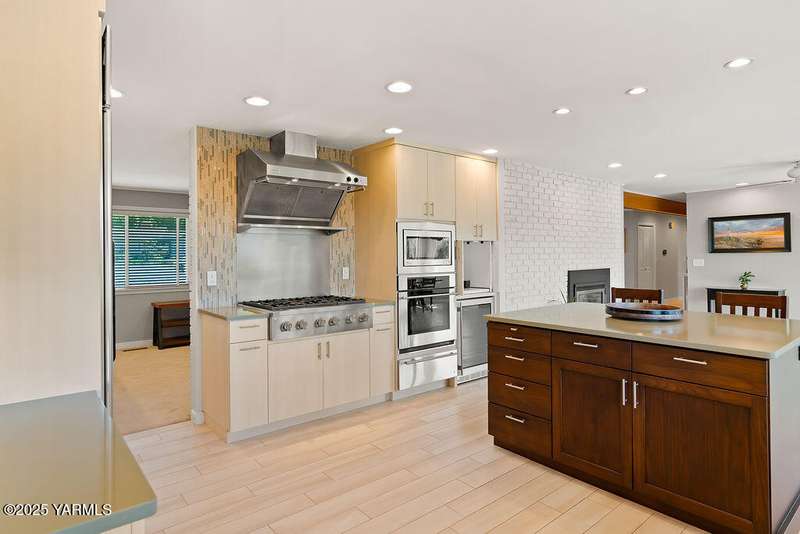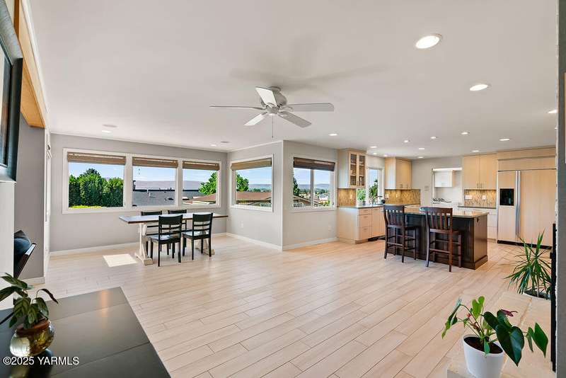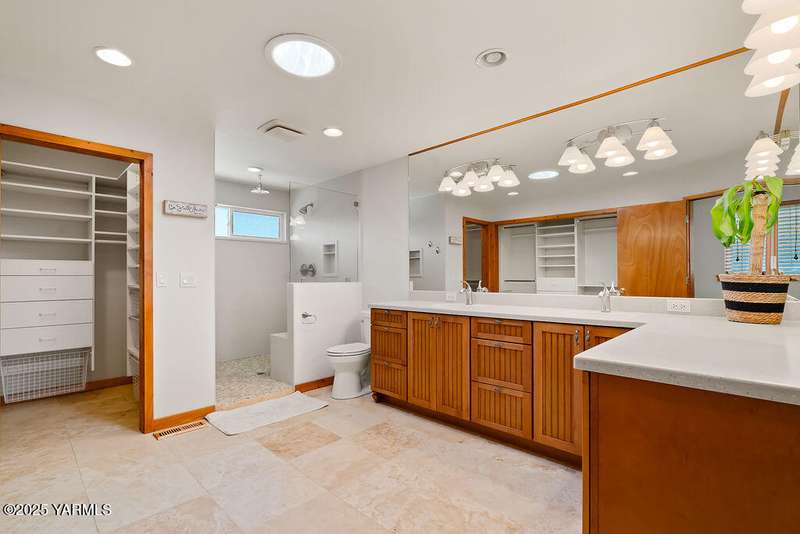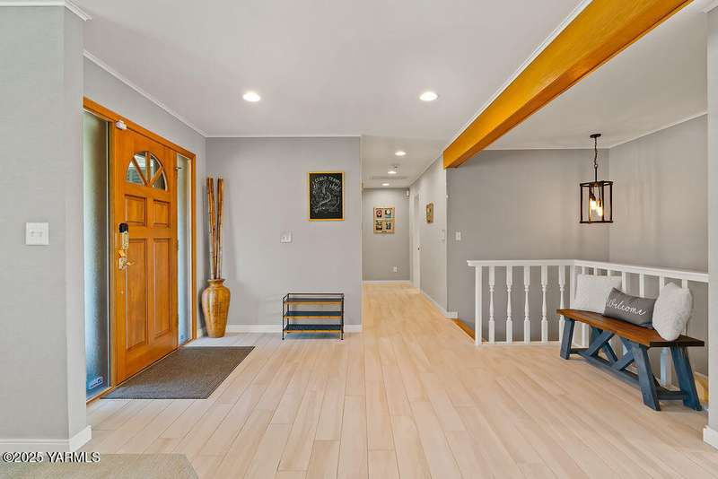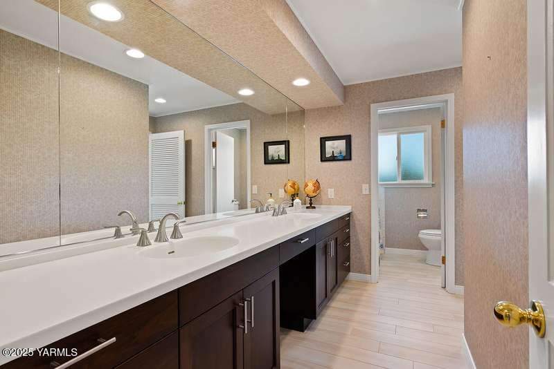Sweeping views of Mt. Adams and the Yakima Valley set the stage for this stunning 4-bedroom (Potentially 5), 4-bath residence offering over 4,000 sq ft of beautifully designed living space on more than half an acre. From peaceful sunrises to golden sunsets, enjoy panoramic vistas from the kitchen, dining room, laundry room, deck, and much of the backyard--this is Northwest living at its finest. Outside, enjoy the in-ground pool along with newer trex decking, and a spacious backyard. The attached 2-car garage is complemented by a fully finished and insulated detached 3-car shop with WiFi garage doors and a private gated entrance--perfect for additional vehicles, hobbies, or storage, along with RV parking right outside. Thoughtfully updated while retaining its timeless charm, the home welcomes you with elegant tile flooring and a double-sided cozy brick fireplace connecting the warm, inviting living room to the formal dining area. The chef's kitchen is a dream come true: soft-close cabinetry with pull-out storage, a built-in warming lamp, high-performance gas cooktop, a trash compactor, wine refrigerator, full tile backsplash, a large island, and abundant quartz counters--designed for both daily living and elevated entertaining. Additionally, there is a spacious laundry room and ample storage throughout. The expansive primary suite is a luxurious retreat complete with heated bathroom floors, dual vanities, his-and-hers closets, and a custom walk-in shower with triple shower heads, highlighted by an overhead rainfall feature. While the guest bath offers a spa-like experience with a sauna, dual sinks, a separate tub and shower combo, and convenient pool access. The daylight basement offers incredible flexibility with direct backyard access, a cozy gas fireplace, wine cellar, reinforced gun/safe room, bathroom, and a dedicated office/homeschool area with built-ins and utility sink. A finished bonus room adds even more space for a gym, media room, or guest suite.