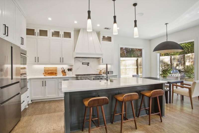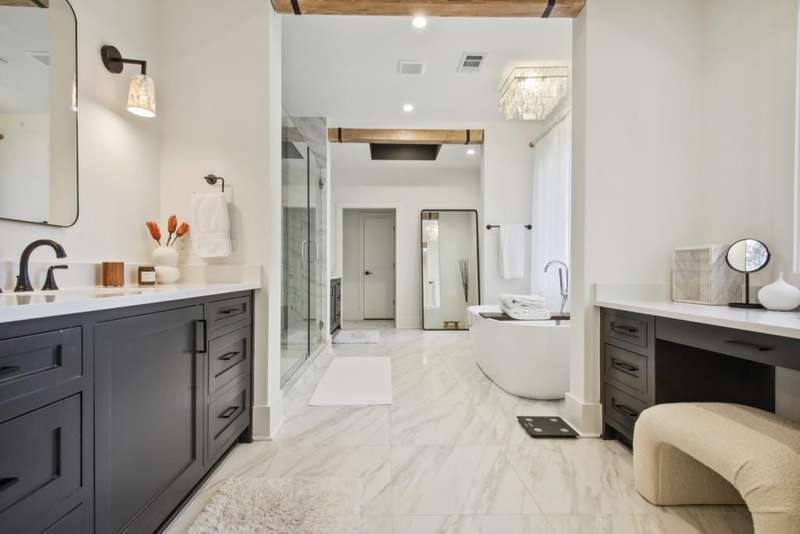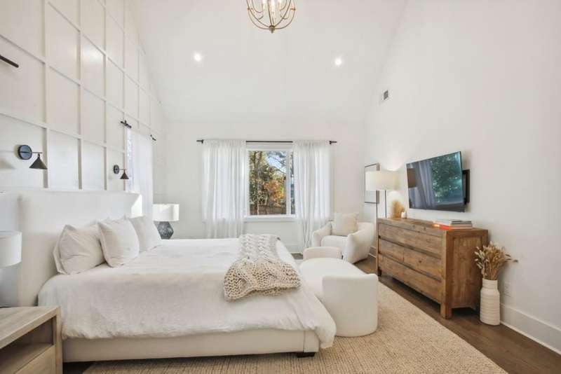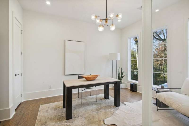 Gorgeous new construction by Six Points Homes, and ready to move in! The impressive and dramatic courtyard style driveway provides a private side-entry garage. This fully furnished, luxury 2-story open concept & 4-sided brick home delivers on all the anticipated high-end amenities and finishes. Stunning kitchen w/matching quartz slab above range top, custom cabinetry & range hood to ceiling, pot filler, & upgraded appliances: Thermador range top, dual oven, dishwasher, Bosch fridge. Amazing butler pantry offers a copper sink, custom copper cabinet inserts, & wine fridge next to the dining rm w/cove ceiling & accent walls. Home boasts hardwoods throughout. All upper bedrooms are en suite w/walk-in closets. The master suite bedrm has a vaulted ceiling & accent wall, trey ceilings in bath, his/her 72 vanities, plus a separate make-up vanity, & custom his/her closets w/bench seating. The media/family/bonus rm on upper floor includes custom LED lighting in cove ceiling, connections for projector, & is 5.1 surround prewired. Two rooms on main offer bonus space for bedrm, office or gym/exercise rm. Multiple workspace options available in front rm/study, office nook, and built-in desk in master. Oversized walkout flat backyard w/room for a huge pool & hardscape. Spectacular details incl copper front & rear sconces; custom walnut wine cabinet w/VintageView racks & custom lighting; ceiling speakers in living room, kitchen, & covered back porch, also prewired for backyard speakers; 42 fireplaces in living rm and covered back porch; exterior gas line for grill; spacious laundry rm w/custom folding table & cabinetry/storage; & tankless, recirculated water heater. Pedestrian friendly location near Ashford Park Elementary School and park.