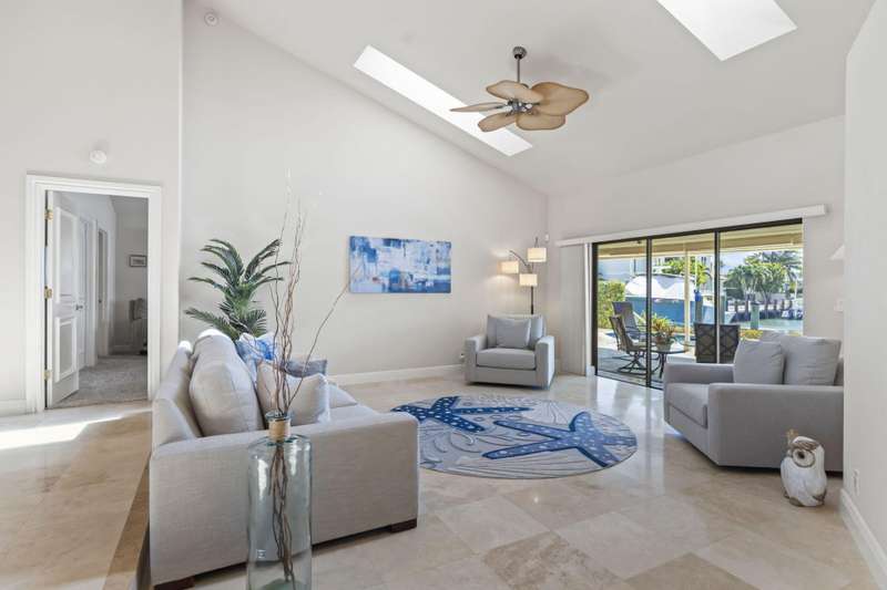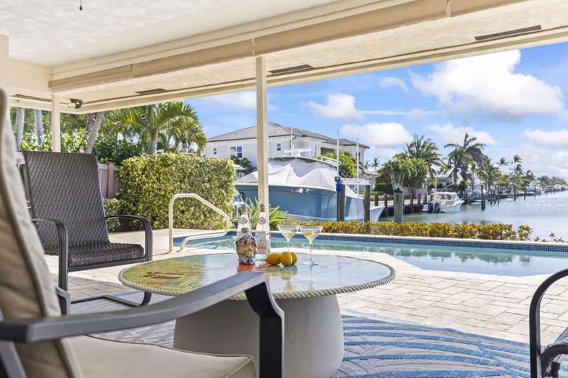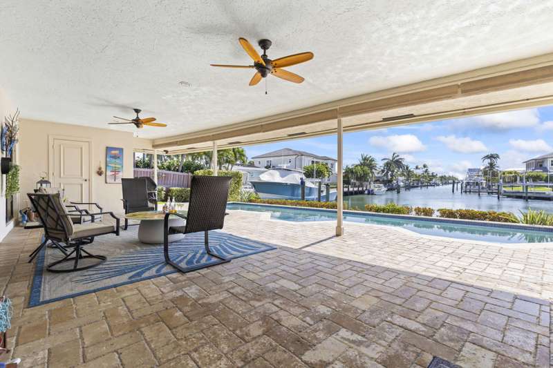 Steps from Singer Islands gorgeous beaches, this waterfront gem offers wide canal and Intracoastal views, 90+ feet of deep-water frontage, and no fixed bridges, ideal for boaters. The 3BR/3BA/2 Car Garage home features 146 vaulted ceilings, travertine marble floors, custom cabinetry, and a chefs kitchen with granite countertops, stainless appliances, and a copper range hood. Enjoy water views from nearly every room, a heated pool, 64 dock, 14k lb lift, and a large covered patio with cabana bath. Located across from Ocean Reef State Park and minutes to Peanut Island, Palm Beach Inlet, upscale shopping and fine dining. Live the best of coastal Florida in total privacy and comfort. Concrete Tile Roof 2014, Newer ACs, Recent $30k in dock & seawall maintenance done. Low HOA! Direct access to the Intracoastal Waterway and ocean within minutes. No fixed bridges. This home has a great foundation for you to make it your own. Making it a perfect Vacation home or full time residence.