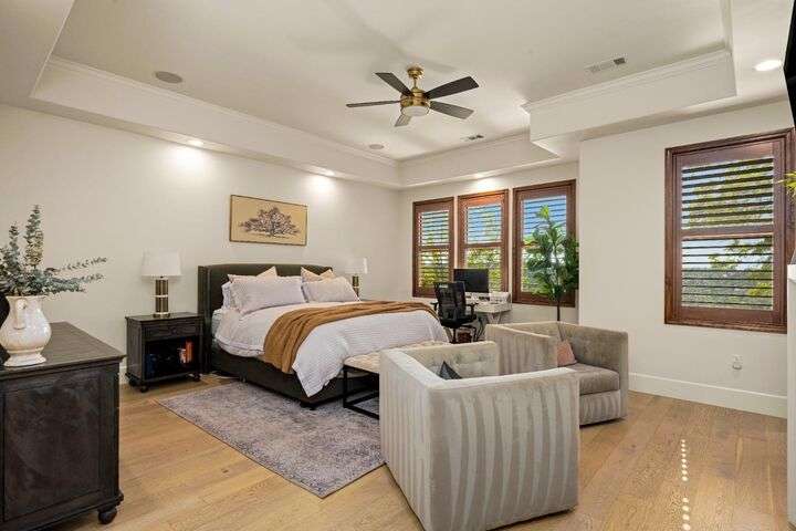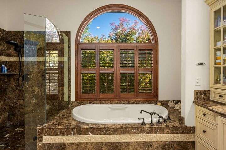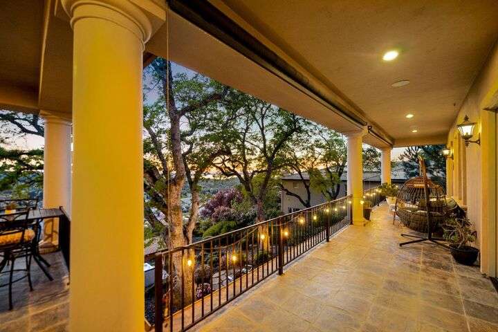 Nestled in the prestigious neighborhood of Serrano Country Club, this luxury residence offers stunning views of Folsom Lake and amazing sunsets. This beautiful home has 4,762 sqft of meticulously designed living space, featuring an open-concept floorplan perfect for both everyday living and entertaining. The main level showcases a gourmet kitchen with 2 dishwashers, 2 beverage fridges and large island perfect for preparing meals and entertaining guests. The kitchen flows into the spacious family room where large windows offer breathtaking views. The main level also includes laundry room, access to garages, formal dining room, living room/office, family room, office/library or 5th bedroom with full bath, and master suite that serves as a private retreat with fireplace and access to the terrace. The lower level of this home has an additional living area with fireplace, theater room, small kitchen, 3 bedrooms and 2 baths. Step outside to experience your own private sanctuary. The backyard is an entertainer's dream with an expansive covered terrace, beautifully landscaped yard, swimming pool, fireplace, jacuzzi and several seating areas to enjoy the stunning lake views and sunsets.