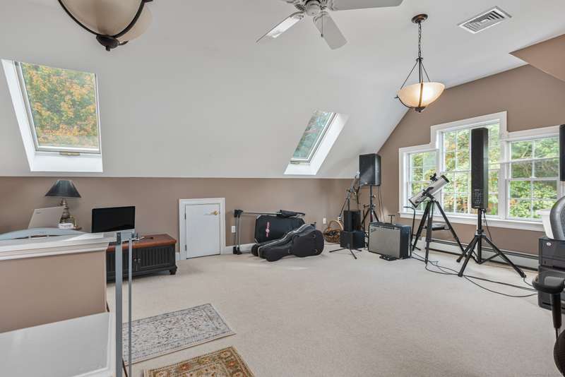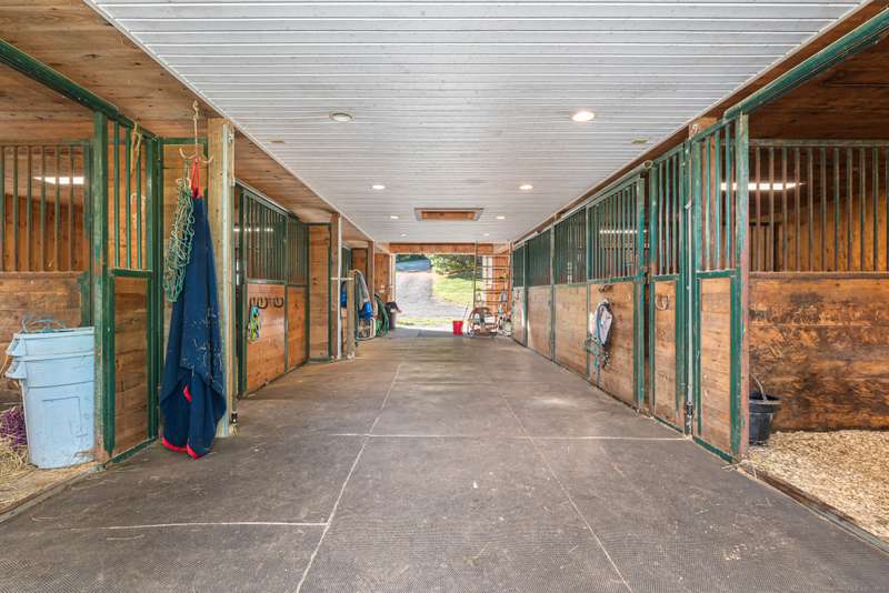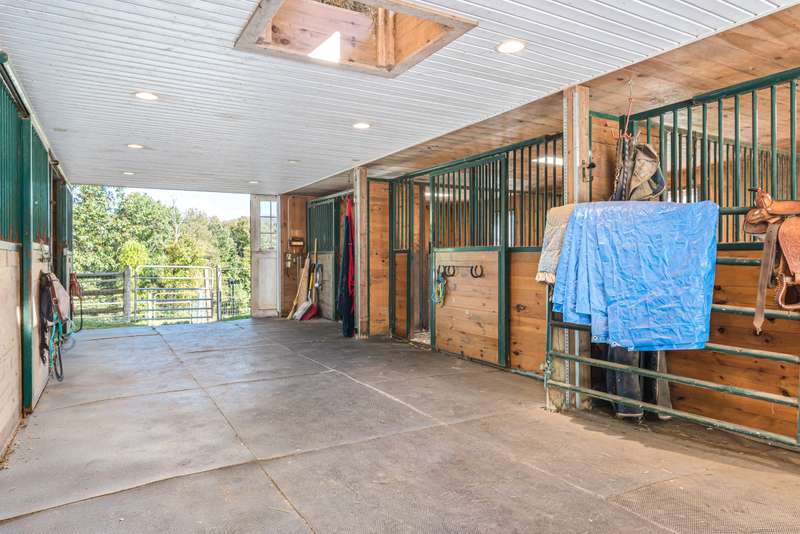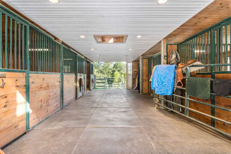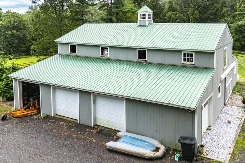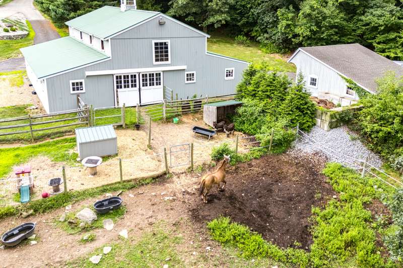 24 Bonair Hill Road in Tolland is a rare find, offering both comfort and functionality for those seeking a blend of country living and modern convenience. This property features a spacious 3-bedroom colonial home, perfectly set on beautiful grounds designed for equestrian or hobby farm use. A well-maintained 7-stall barn, multiple pastures, and fenced paddocks provide ample space for horses or livestock, while seven garage spaces ensure plenty of room for vehicles, equipment, or workshop needs. Combining charm, practicality, and versatility, this estate is ideal for anyone looking to enjoy a peaceful lifestyle with room to grow. Upper level offers 3 potential bedrooms as well as an upper level balcony area/ family area. Lower walk out level has double doors leading out to the back yard. Owner currently runs her business out of this level. All equipment does not convey. Unfinished basement area used for workout equipment and there is a separate laundry room.