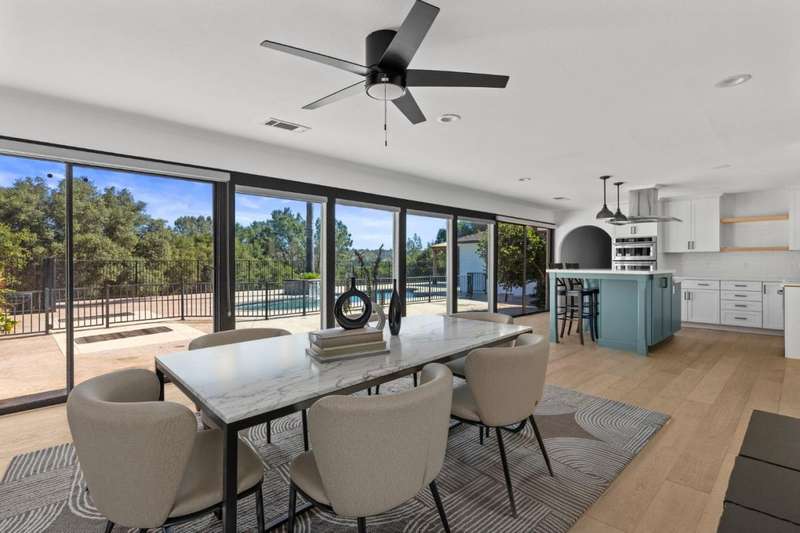 Modern Farmhouse Living in an incredible location. This beautifully updated single-story ranch offers the best of country living with modern comfort and convenience. Featuring 4 bedrooms and 2 bathrooms, the home sits on just under 6 acres of usable land perfect for horses, livestock, or simply room to roam. The kitchen has been recently remodeled with stylish finishes, and updated flooring and fresh interior paint (including the family room) give the home a bright, refreshed feel. Enjoy the privacy of a gated, paved entrance with plenty of space for RVs and toys. The freshly painted barn offers over 1,000 sq ft of flexible space ideal as a workshop, animal shelter, or storage. Large picture windows and sliding glass doors fill the home with natural light and create seamless indoor-outdoor living. Unwind in the pool and spa, entertain in the spacious family room with a custom bar, and temperature controlled storage room to make for a fantastic wine cellar. Additional highlights include an interior laundry room with extra storage, tankless water heater, new water filtration system, new furnace and solar for energy efficiency. All this just minutes from Folsom, El Dorado Hills, and Sacramento don't miss this rare opportunity for stylish rural living in a prime location!