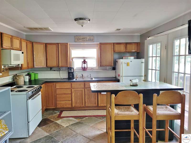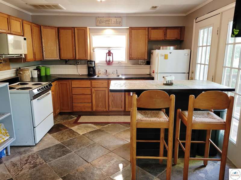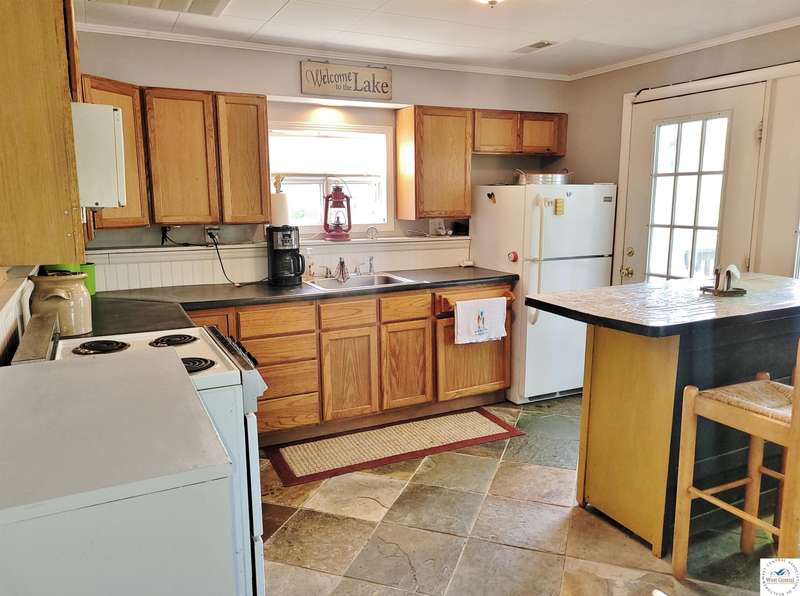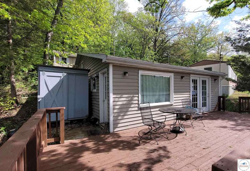 What a BARGAIN! Waterfront home with dock on deep water. Come check out this perfect weekend get away with 2 bedrooms 1 bath and a bunk house! Low maintenance so you can enjoy your weekends. Open living, dining and kitchen with 2 bedroom and bath upstairs. Also an 8x12 bunkhouse the kids will love! On the water, enjoy your covered dock with large swim platform and boat lift. Fantastic view on deep water at the 77 mile marker on the north (KC) side of Lake of the Ozarks. Fun and entertaining restaurant/bar/marina just up the road. There is plenty of parking behind the house! Includes storage buildings by the house and on the dock. Plus this one comes mostly furnished! Come see it soon before it's gone!