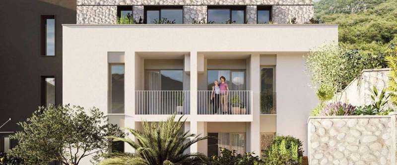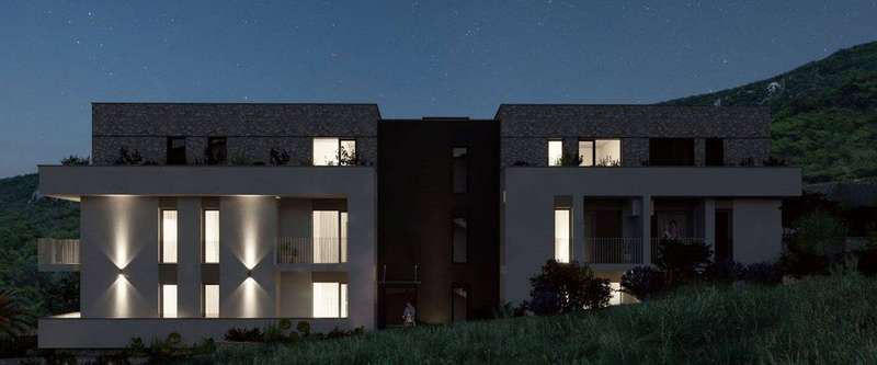 These one-bedroom apartments for sale are in the Aura Lastva Lux complex in Lastva Grbaljska, between Budva and Kotor. Nestled in peaceful, sun-drenched valleys and embraced by verdant landscapes, Aura Lastva Lux is just minutes away from key urban hubs and the coast. A mere 10-minute drive takes you to the bustling center of Budva, while the famous and stunning Jaz Beach is only five minutes away. This prime location ensures quick access to all essential amenities yet offers the quiet and privacy needed for complete relaxation.