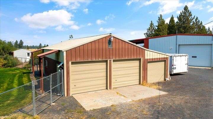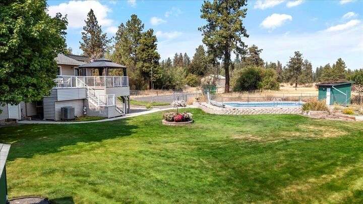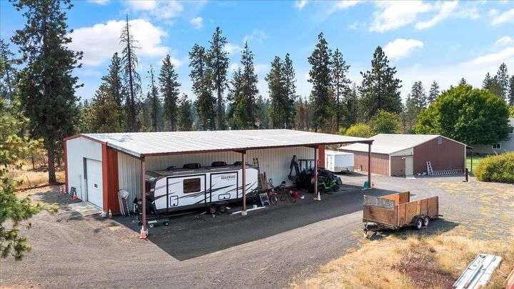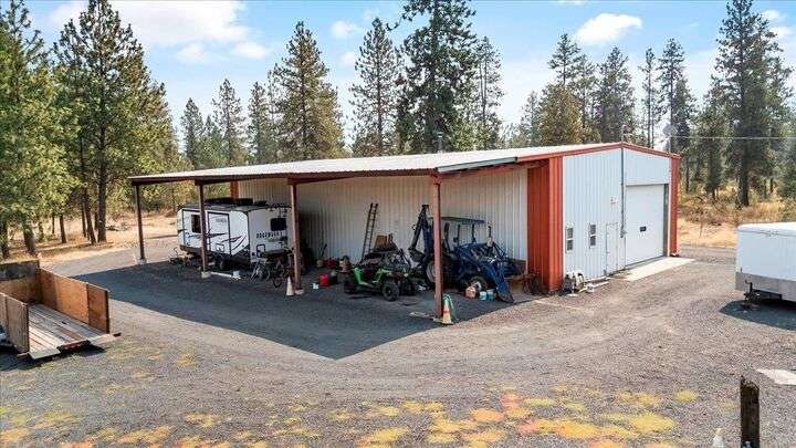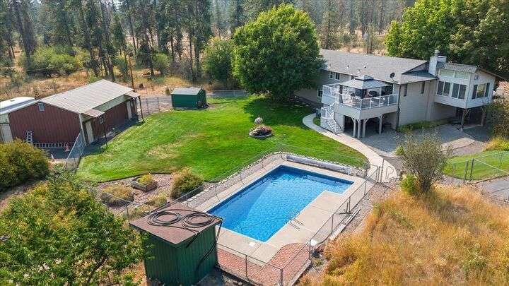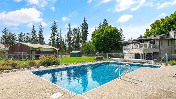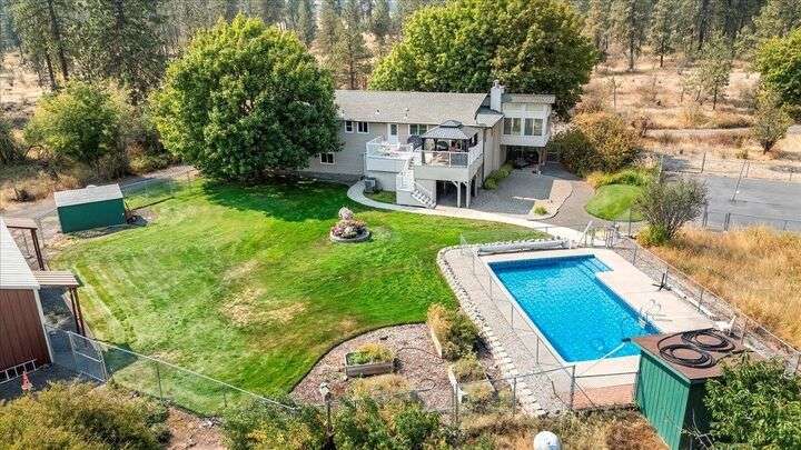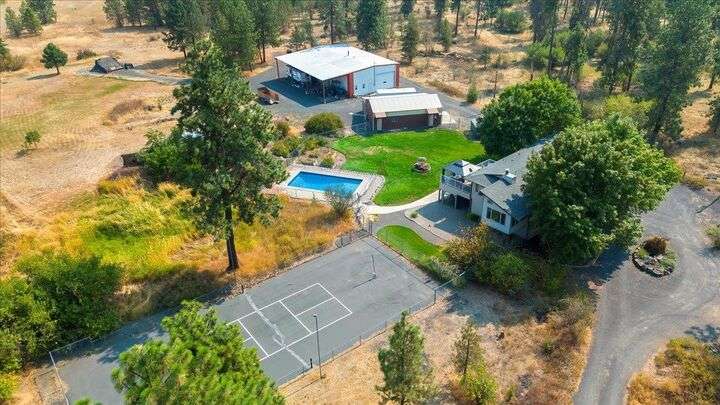 On the edge of Spokane! Imagine a peaceful & private 10 acre gated access setting, spacious 3400sf - 4 bed/3 bath home & 2 heated shops plus a 3-car garage just minutes from all the necessities. This is a 1 owner, custom built & well-maintained home offering great living spaces, surrounded by acres of nature, multiple shops, large sport court, 32’ in ground pool & shooting range. Featuring a custom kitchen, big family rooms w/wood burning stove down, dedicated office space, oversized master bedroom & walk in closet. Outdoors offers a quality composite deck with gazebo overlooking a backyard paradise to enjoy. Mechanics dream shop (40x75) I beam steel construction with 16’x12’ overhead doors, 10k 4-point vehicle lift, 220 power, office space, storage loft, ½ bath & 16’ wide lean to. ADU ready hookups! Efficient minded home build with 2x6 framed walls, heat pump & central heat = low utility bills. New roof, upgraded windows, newer HVAC system. Plow tractor stays. Ask for additional list