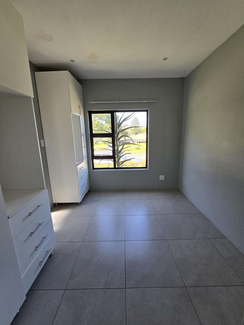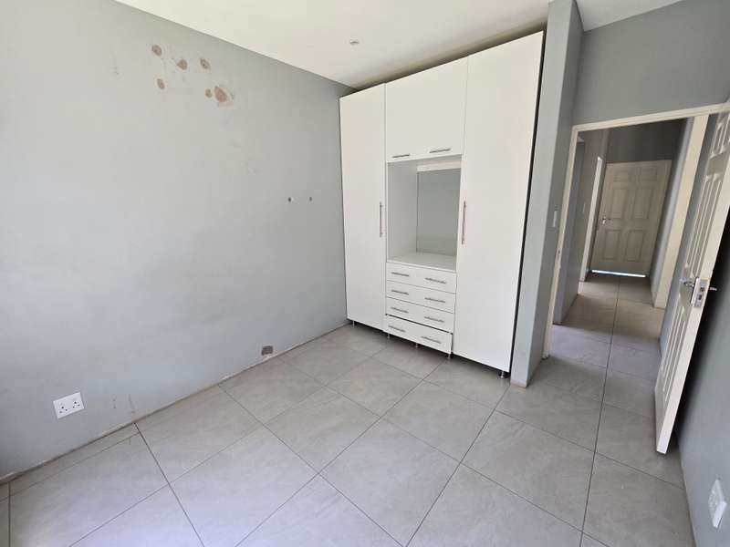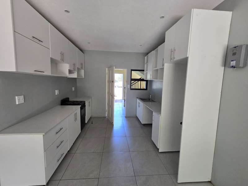 Each unit consists of 3 bedrooms, 2 bathrooms, one of which is an en suite, and an open plan kitchen/lounge with an electric stove in the kitchen and an aircon in the lounge. This unit is upstairs so it has a balcony. The property also has 24hr security cctv, gated access control through an app for all tenants so no one can enter the property without a code as well as a play area for the kids and a braai area as no open fires are allowed near the units. Unit maintenance is done through the app which has the numbers for all service providers. Garden maintenance is done by a gardener. Use of fire hoses for washing of vehicles is strictly prohibited. No parties/loud music allowed. Security is not allowed to open the gate for anyone without a code unless they are in a vehicle being driven by YOU. Please whatsapp with your name before calling so I know who is calling as I get a lot of scam calls