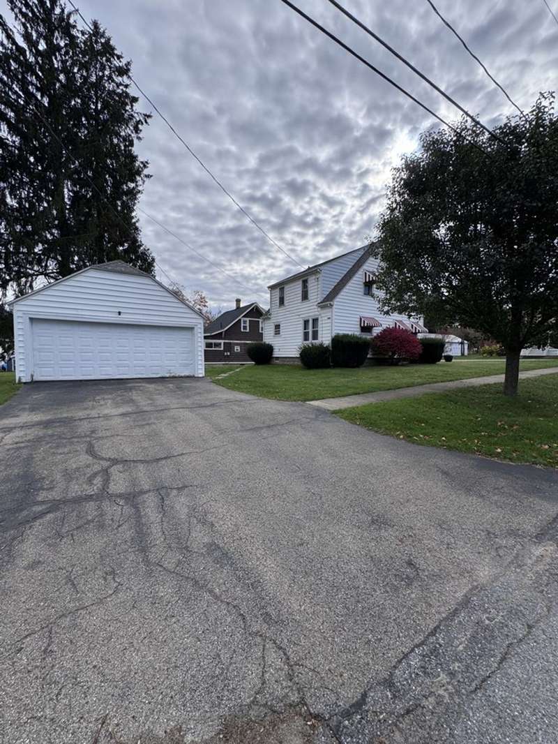 Another quality home. This two story home features original hardwood flooring and exquisite woodwork throughout, offering a blend of classic charm and modern comfort. The property includes a detached two-car garage with a blacktop driveway, providing ample parking. Attached to the rear of the garage is a covered porch with concrete that would be perfect for gatherings or for relaxing. The living room has a wood burning fireplace with a beautiful mantel set off with lighted scones. The first level has an office/den, but this room could be used for any need. There is a half bathroom and laundry area on the first level. Three bedrooms and a full bathroom on the second level. Front enclosed sun porch. Level corner lot. Hot water baseboard heat but some hot water radiator heaters. Don't miss the opportunity to make this very nice house your new home!