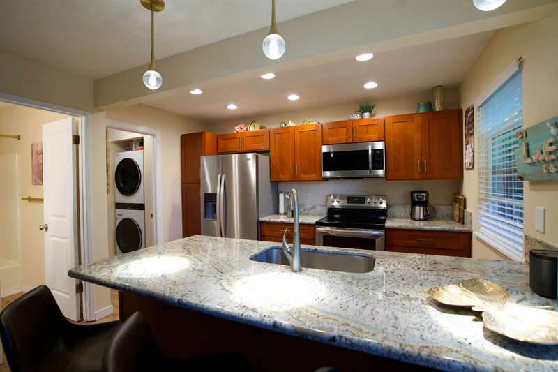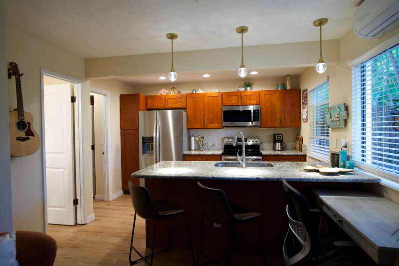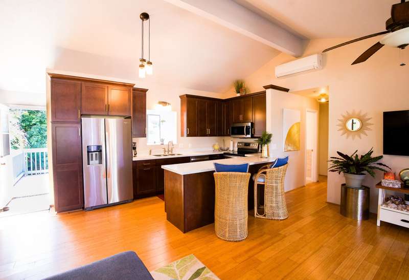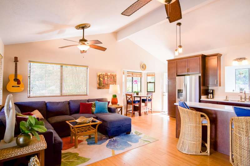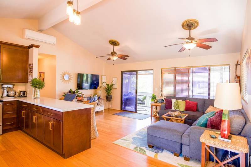 South Maui Dream Home Awaits! Welcome to your idyllic retreat at the end of a peaceful cul-de-sac, where tranquility meets modern living. This beautifully updated home boasts soaring high ceilings and an expansive screened-in porch, providing the perfect space to relax and enjoy the gentle Maui breezes . Designed for both comfort and sustainability, this property features a state-of-the-art photovoltaic system that enhances energy efficiency, complemented by a split system air conditioning to keep you cool year-round. The fenced yard offers a private oasis for unwinding in your own slice of paradise. Bonus feature of this property is the charming one-bedroom, one-bath ohana located downstairs, complete with its own private entry and laundry facilities. This versatile space is perfect for guests, extended family, or as a rental opportunity. Situated just moments away from the world-renowned beaches of South Maui and the luxurious amenities of Wailea, you’ll have easy access to pristine sands, exquisite dining, and boutique shopping—all within a short drive. Additionally, there’s an approved plan for a detached cottage, which can be included in the sale. Embrace the beauty and serenity of South Maui in this exceptional home, where every detail has been thoughtfully considered. Don’t miss your chance to make this dream a reality!