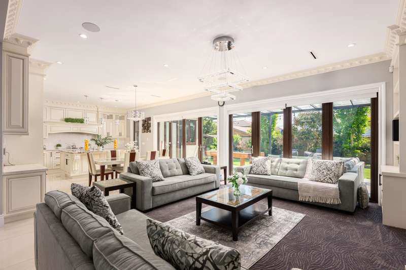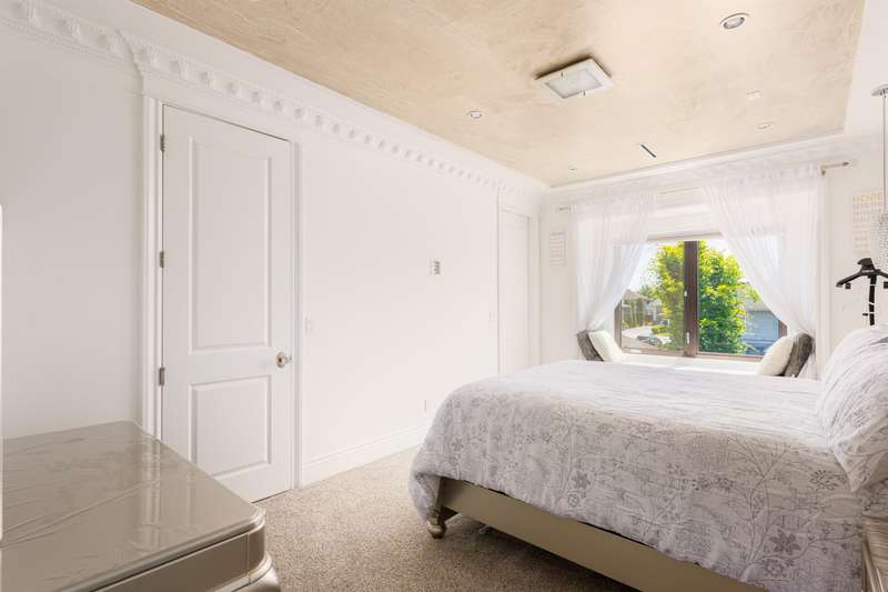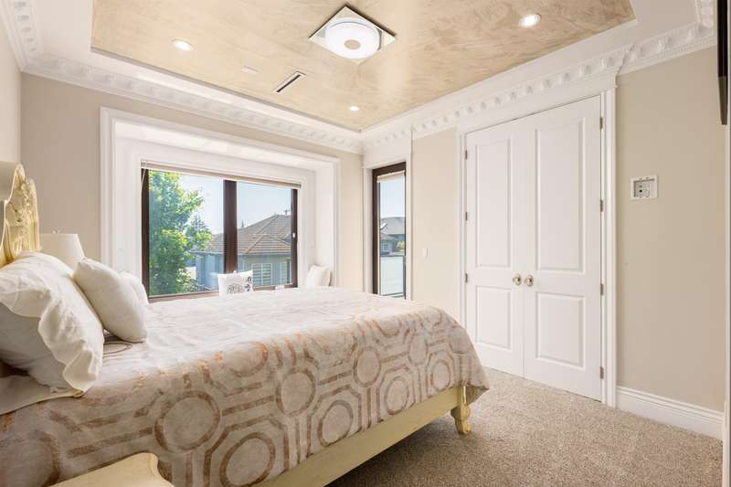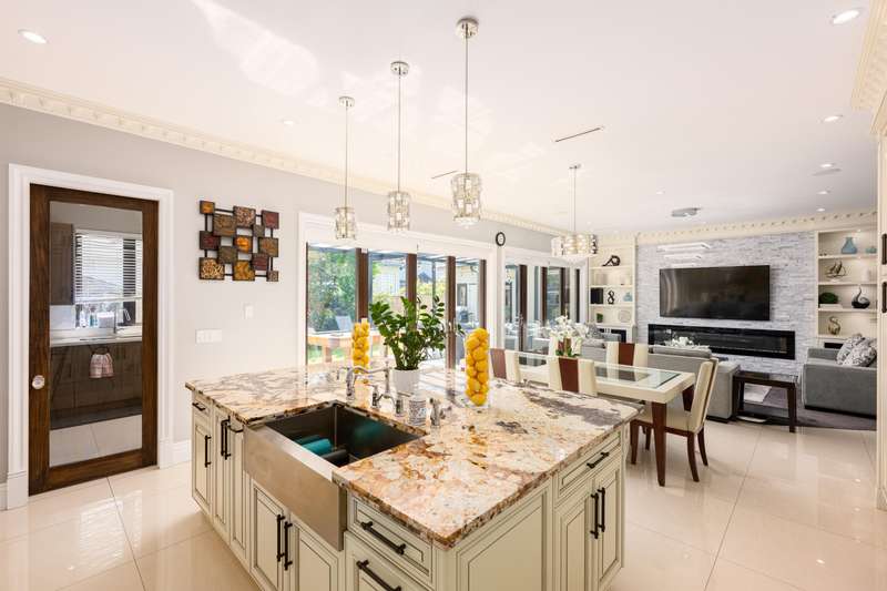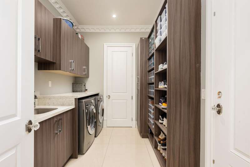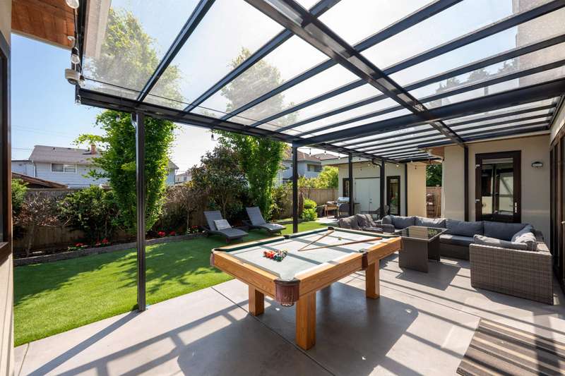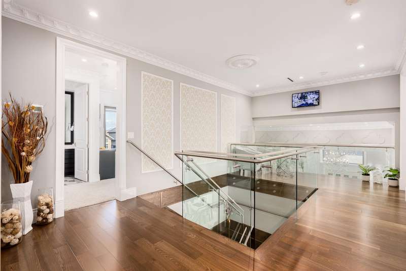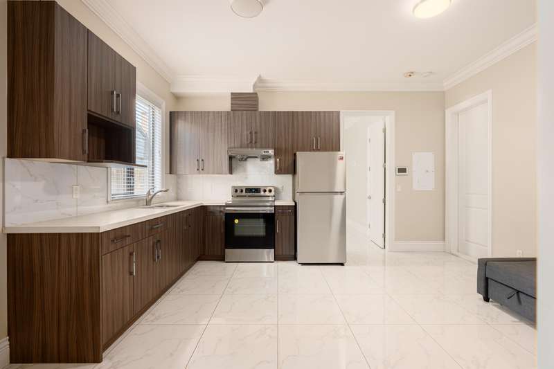 Better than new! This stunning south-facing custom home sits on an 8,713 sqft lot on a quiet street, featuring top-quality craftsmanship throughout. Soaring ceilings in the living and dining areas. Bright and cozy south-facing family room with large German folding patio doors. Main floor media room with full bath can be converted to an ensuite. Legal suite offers great mortgage helper potential. Upstairs boasts four spacious ensuite bedrooms. Equipped with intercom, built-in speakers, and security system. Close to shops, banks, restaurants, schools, transit, and more. A must-see!