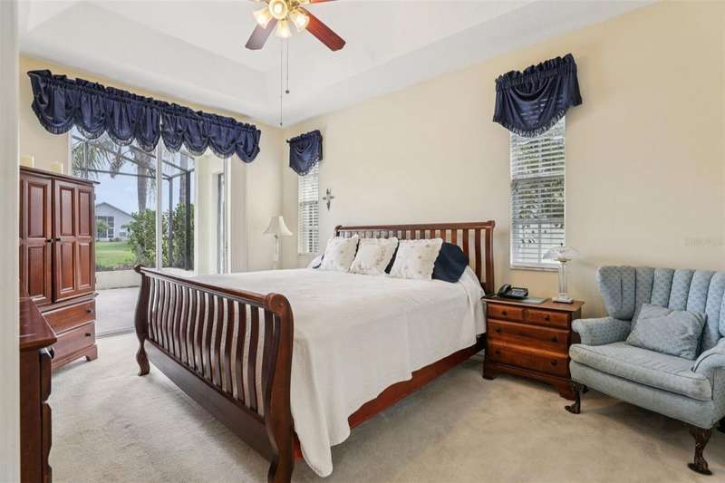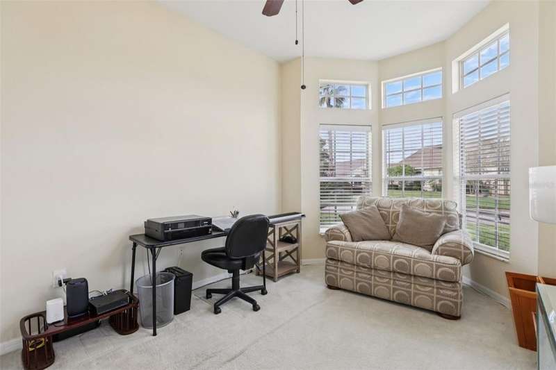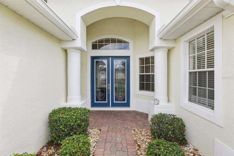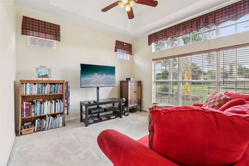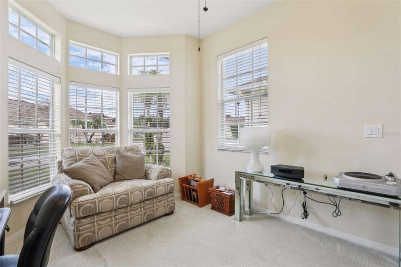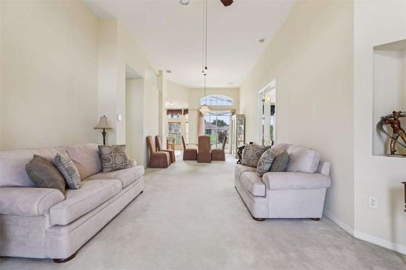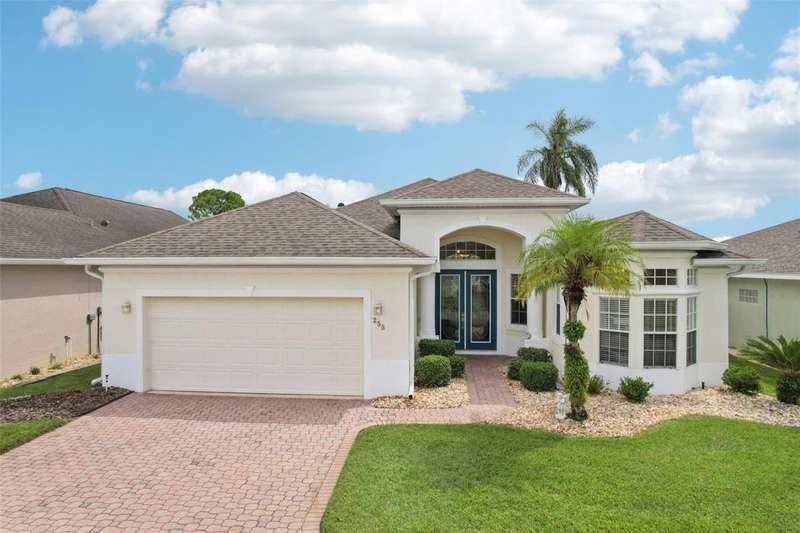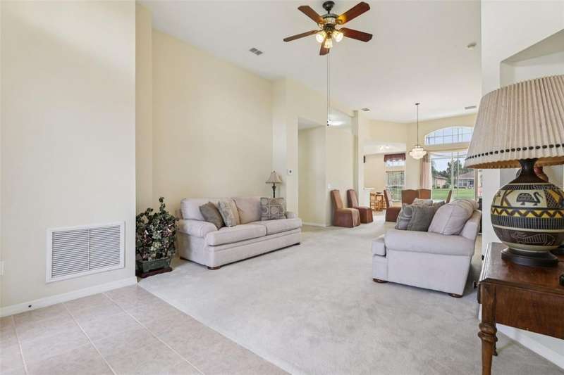 Under contract-accepting backup offers. Welcome to a very immacuately maintained home tucked within the highly desirable 55+ community of High Vista at Ridgewood Lakes in beautiful Davenport, Florida. Located in a secure, guard-gated neighborhood, this home offers the perfect blend of comfort, peace of mind, and Florida lifestyle living. This home is now priced and marketed properly, so don't miss your opportunity to be the new owner! From the moment you arrive, you'll be charmed by the home's curb appeal, with its paved stone driveway and walkway leading to elegant double glass entry doors. Step inside to an open floor plan that invites you to relax, gather, and enjoy. The spacious main living areas feature soaring ceilings and an abundance of natural light, flowing effortlessly out to a large, rear screened lanai the ideal spot for morning coffee, afternoon reading, or evening sunsets.Just off the main living space, a welcoming family room and formal dining area create a perfect setting for entertaining. The adjacent kitchen is both functional and inviting, with classic maple cabinetry, convenient roll-out shelves, a pantry, and crisp white appliances, everything you need to feel right at home.The private primary suite offers a quiet retreat, complete with its own access to the lanai, dual closets, and a beautifully appointed ensuite bath featuring a jetted soaking tub, separate shower with bench, dual sinks, and a private water closet. The thoughtful split-bedroom layout includes two guest rooms that share a full bath, as well as a versatile fourth bedroom or office near the front of the home ideal for guests, hobbies, or remote work, and bathed in natural light from large bay windows.Additional features include a full laundry room with side-by-side washer and dryer, a two-car garage with utility sink, an irrigation system, and ceiling fans throughout the home for added comfort. Living in High Vista is about more than just a beautiful home, it's about community. The HOA offers access to a well-appointed clubhouse with pool and spa, fitness center, tennis, lawn cutting, internet and cable.