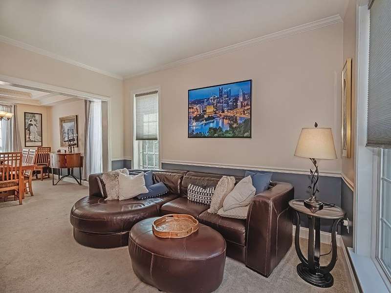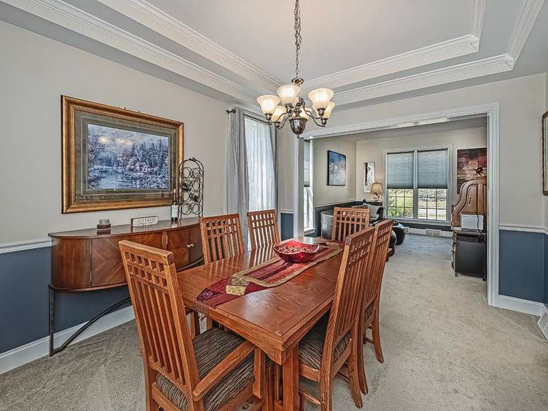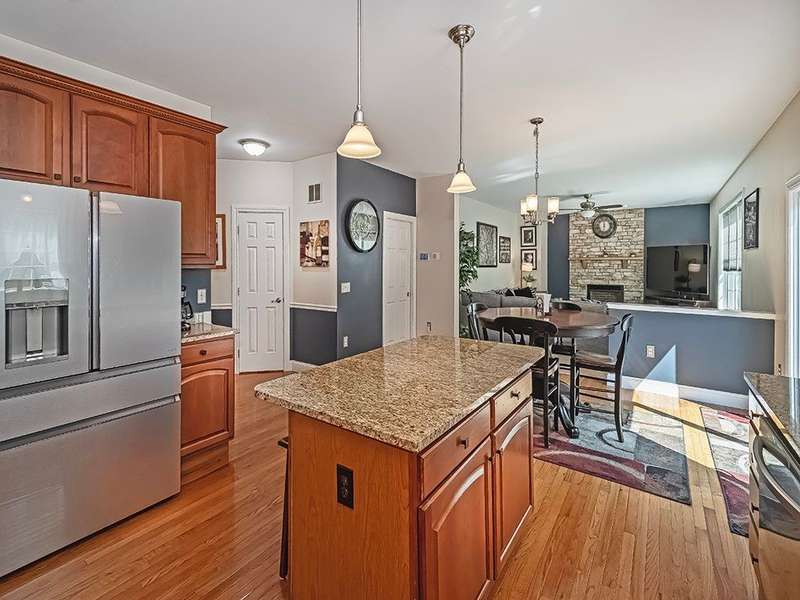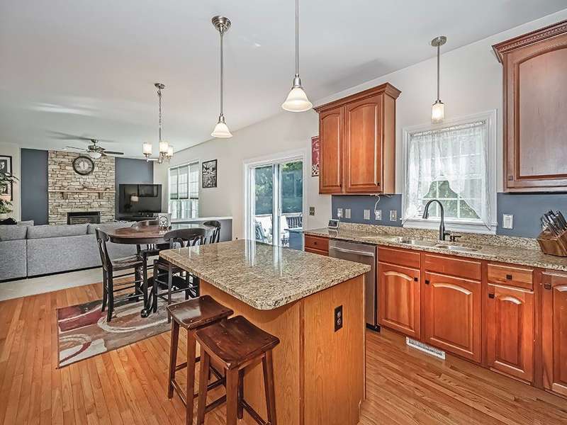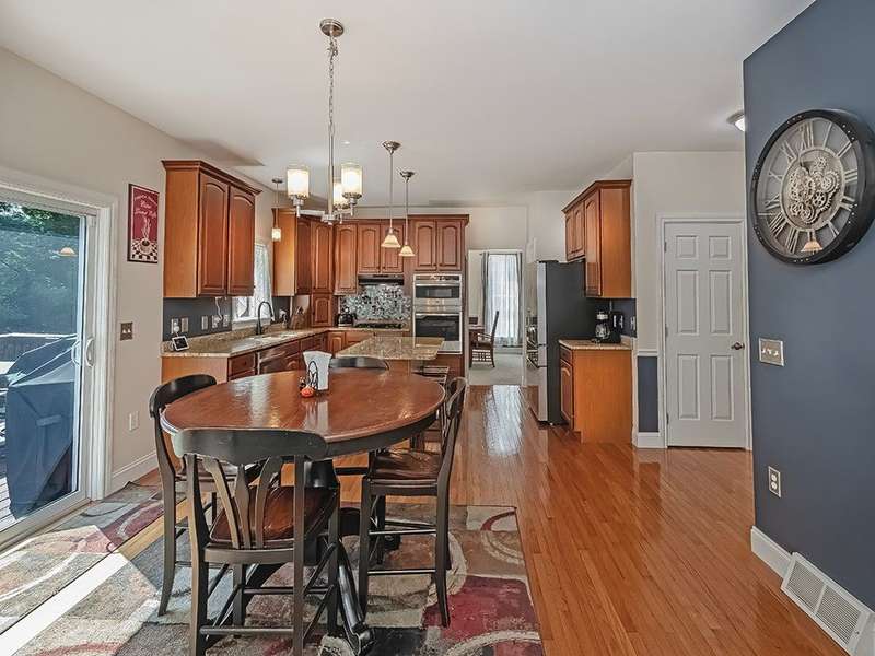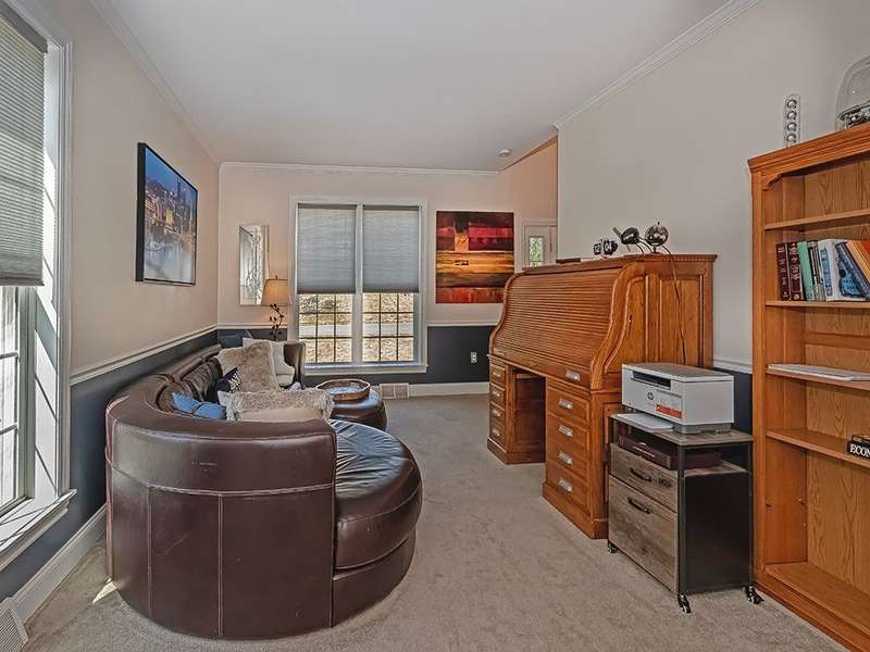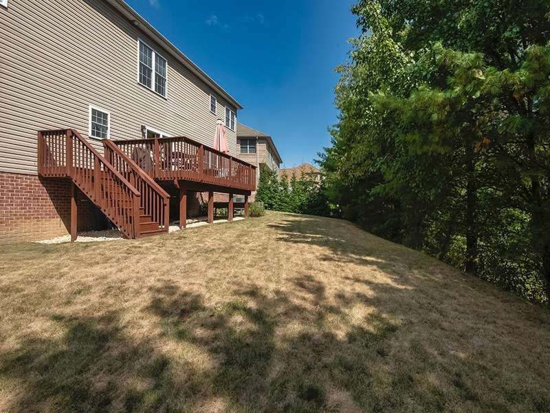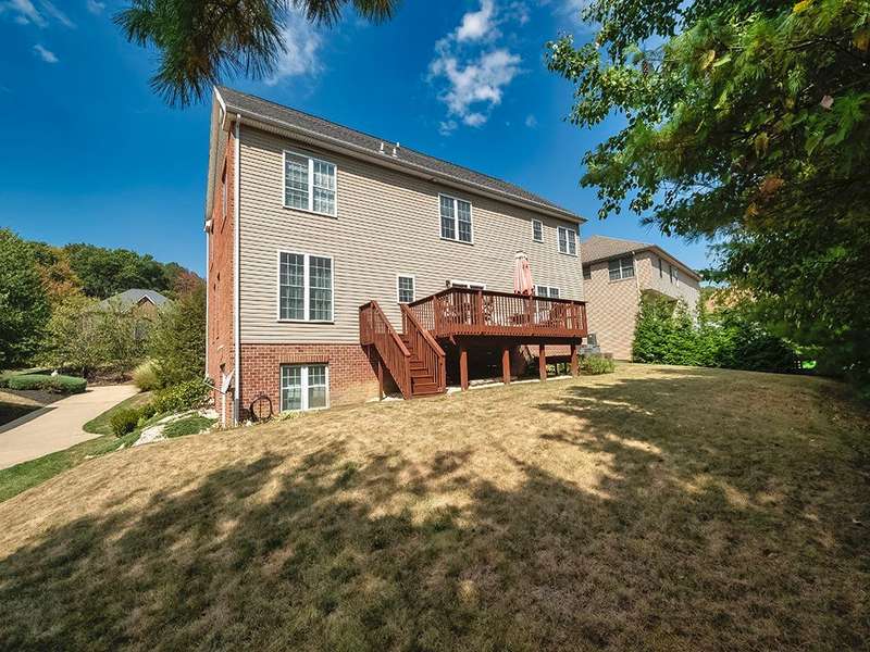 Desirable Preserve east neighborhood close to shopping, parks and schools. This impressive home offers a bright and open floor with hardwood floors, crown moldings & large windows. The two- story foyer welcomes you and opens to the first- floor office & lovely living room that leads to the delightful dining room. Fully equipped kitchen with CI, granite counter tops, cherry cabinetry, SS appliances & glass doors leading to the rear deck and private treelined rear yard. A wall of windows & floor to ceiling stone accented gas fireplace highlights the fabulous family room. The spacious primary suite offers 2 walk-in closet & spa-like bath. The 2nd bedroom host an en-suite bath with full tub & shower. The 3rd and 4th bedrooms share a full hall bath with double sink vanity. The 59x32 unfinished walk-out lower level offers room to expand for a future game room, theater room, gym unlimited possibilities! Do not miss out on this lovely home!