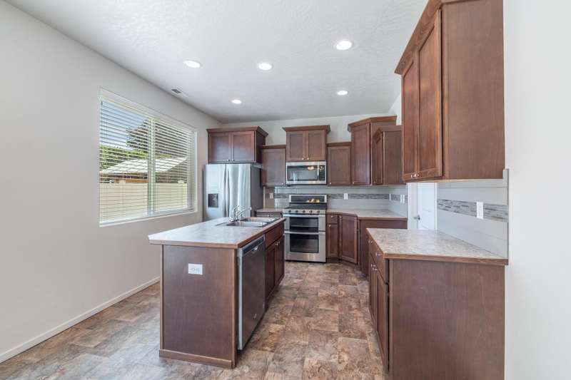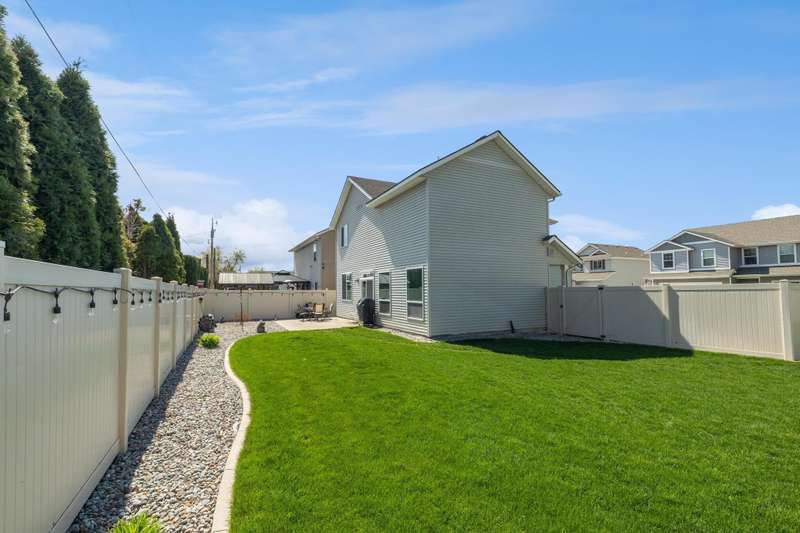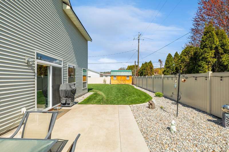 Beautifully maintained 4 bed 2.5 bath 1,646 sq ft Spokane Valley home tucked away on a large lot in a quite cul de sac with access to shopping & recreation just minutes away! Elementary, middle and high school are all within walking distance out of the front door. This homes offers an open concept floor plan with 9ft ceilings throughout the living room, kitchen and dining area & has the comfort of A/C. Upstairs is an oversized master bedroom & bathroom with walk in closet in addition to 3 more bedrooms & 1 bath to accommodate your living needs. The large & private backyard is fully fenced with an enlarged concrete patio, full sprinkler system, 10x16 garden shed and a double Gate for RV or boat storage.