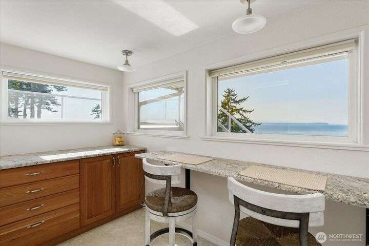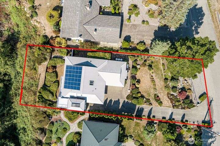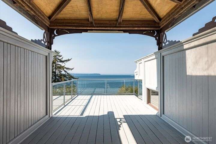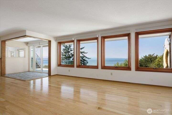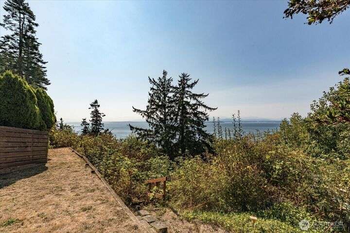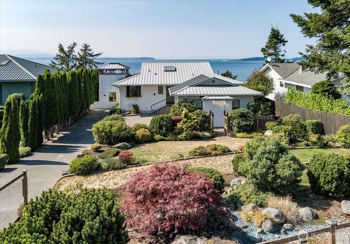 Welcome to this beautiful home with sweeping, unobstructed west side shipping lane, mountain & Strait of Juan de Fuca views. On a clear day one can even catch a glimpse of Victoria, B.C. Nestled on .33 acres with a 50' view corridor. Timeless craftsmanship with modern updates for comfort & efficiency. A private 2 tier deck with covered area to enjoy al fresco meals while taking in the views. Inside you’ll find red oak flooring, porcelain tile, new kitchen appliances, breakfast bar facing the water a pantry & much more. Featuring 2 main floor bedrooms, fireplace, & professionally landscaped grounds by Creative Gardens. Energy efficient home w/solar panels, a mini split & 2 tankless water heaters. Enjoy beach access, a sports court & parking.