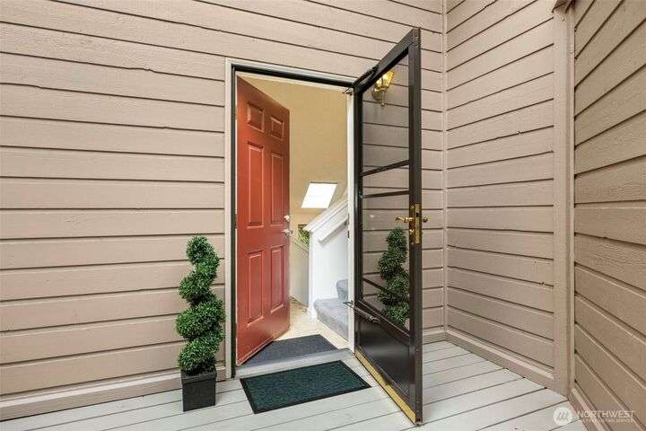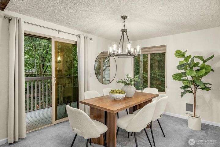 RARE Forestbrook corner/end-unit townhome with the convenience of an attached TWO-car garage. Step inside to soaring vaulted ceilings, skylights that bathe the space in natural light, and an airy open layout that feels both spacious and inviting.Your expansive main deck looks out to a gorgeous backdrop of trees and a gently flowing creek — a beautiful forest retreat. Thoughtful upgrades in the kitchen, baths, laundry, and lighting, paired with like-new appliances, create a fresh, move-in-ready home. Two private decks for morning coffee or evening sunsets, plus generous storage throughout.
