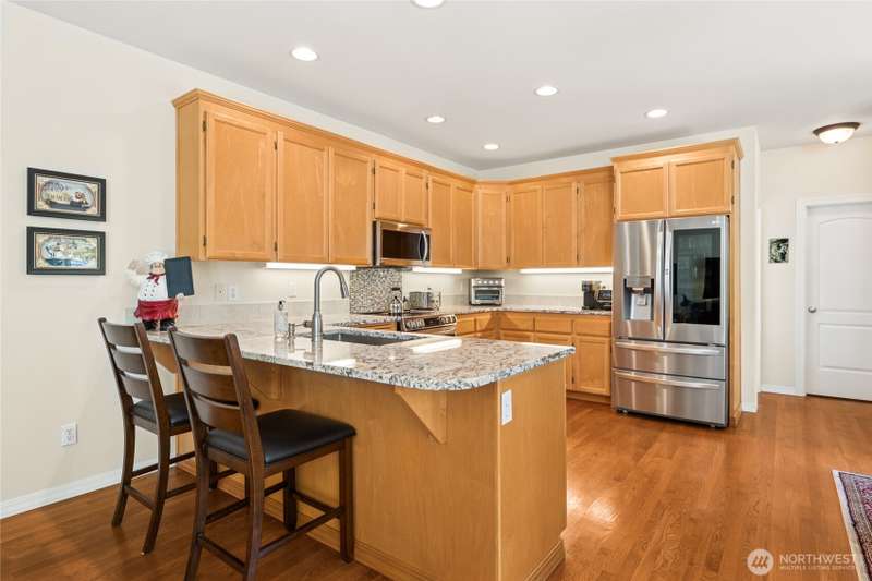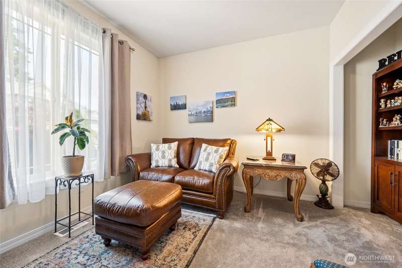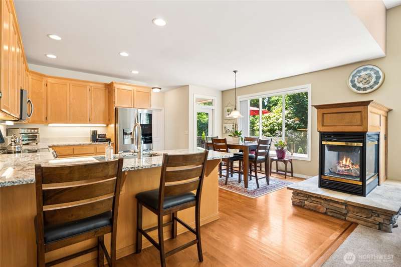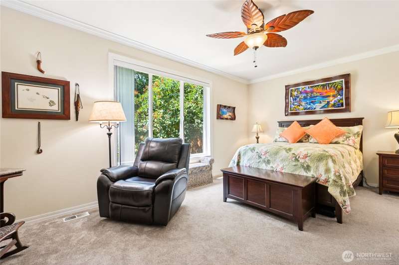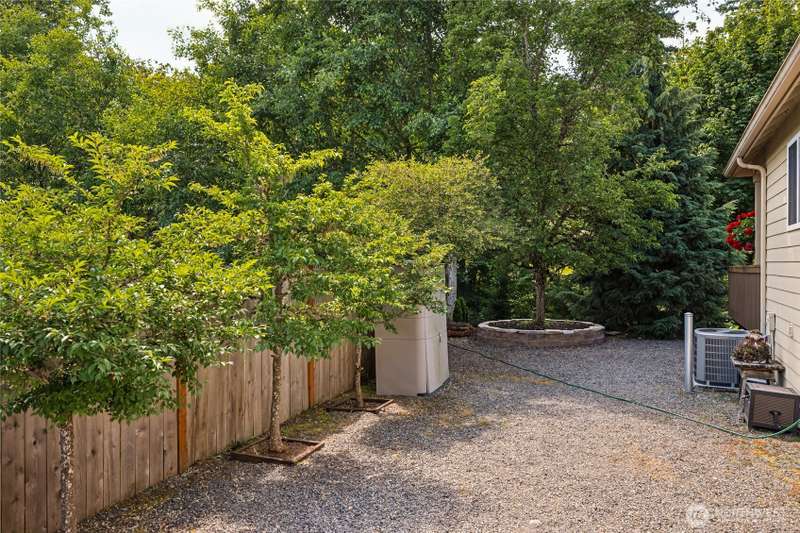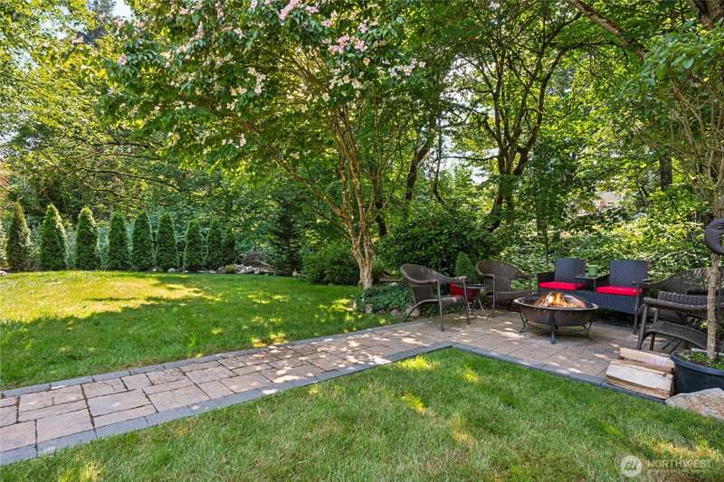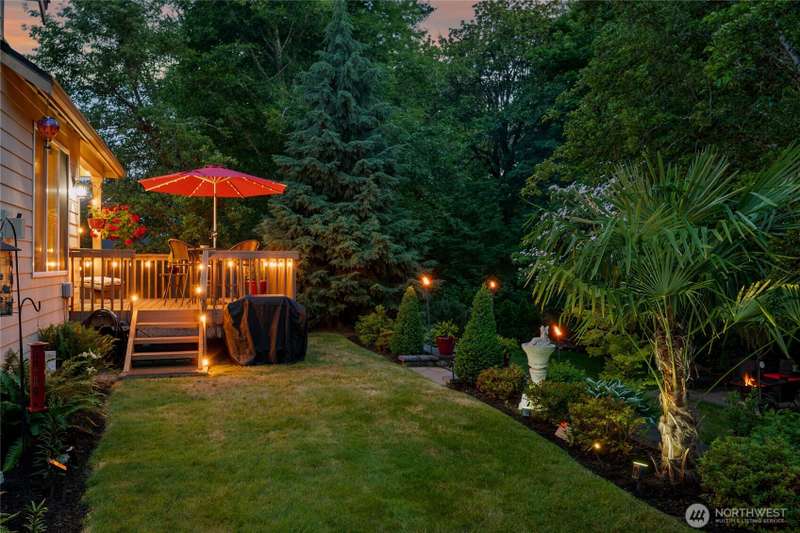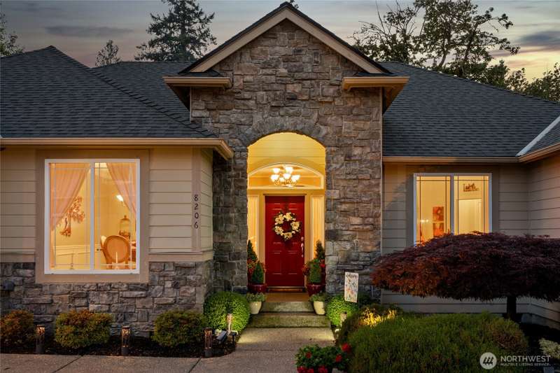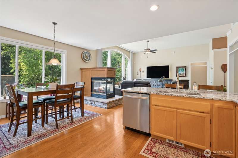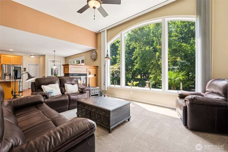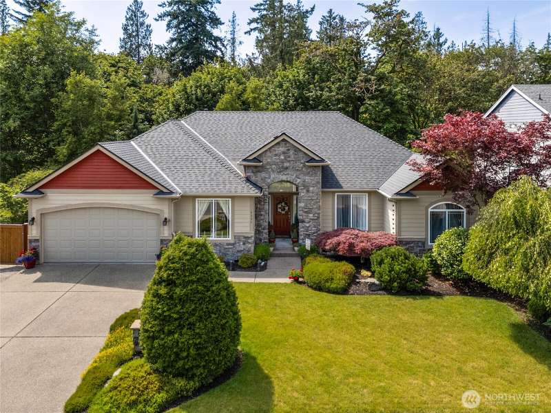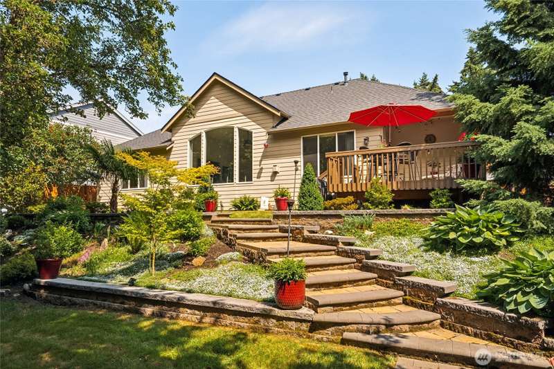 Nestled in the desirable gated community of Belmont, this beautifully maintained rambler backs to a peaceful greenbelt. Enjoy professionally terraced landscaping surrounded by lush greenery, with new decking for entertaining & a charming pavered patio on the lower terrace set beneath the trees. Inside, you’ll find an updated kitchen with granite counters & newer stainless appliances, newer carpeting throughout, & high vaulted ceilings that enhance the spacious feel. A large living room window perfectly frames the tranquil natural views, while the formal dining room is ideal for hosting. The primary suite features a custom-designed walk-in closet & a private ensuite for your comfort. A new roof adds value & peace of mind—truly move-in ready!