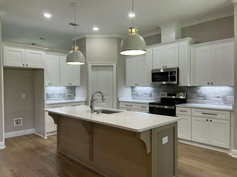 Stunning New Custom Home in Holley by the Sea - Estimated Completion February 2026Experience luxury coastal living in this brand-new custom-built Robbins Builders home, ideally located on a quiet cul-de-sac in the sought-after Holley by the Sea community. Residents enjoy exclusive access to resort-style amenities including multiple pools, a fully equipped fitness center, tennis courts, pickle ball, a waterfront park, and deeded access to the Santa Rosa Sound. This 4-bedroom, 3-bathroom tri-split floor plan showcases timeless craftsmanship, trendsetting design, and attention to every detail. The inviting foyer opens to a formal dining room and private office with double glass doors, leading into an expansive open living area filled with natural light & eye-catching architectural ceiling The gourmet kitchen is a true centerpiecefeaturing elegant shaker cabinetry with crown molding, beautiful quartz countertops, a stylish tiled backsplash, stainless steel appliances, and a large center island that flows effortlessly into the breakfast nook and family room. A walk-in pantry provides exceptional storage, while wood-look staggered tile flooring enhances the home's modern coastal charm.The spacious primary suite offers a relaxing retreat with a trey ceiling, ceiling fan, and a spa-inspired ensuite boasting a luxurious tiled walk-in shower, soaking tub, dual quartz vanities with framed mirrors, and a huge walk-in closet. Two guest bedrooms share a thoughtfully designed Jack & Jill bath, while the fourth bedroom enjoys its own private bath and direct access to the large, covered porchperfect for guests or multigenerational living.Additional highlights include a laundry room, oversized 3-car garage ideal for trucks and outdoor gear, and a landscaped yard with irrigation system, lawn pump, and well with digital timer. Built for comfort and peace of mind, the home features TAEXX in-wall pest control, Fabric Shield hurricane protection, a dimensional shingle roof, crown molding, recessed lighting, and more.Enjoy a short drive to Navarre Beach, local shopping, and Hwy 98 for an easy commute to Hurlburt Field AFB. Don't miss the opportunity to own this exceptional new home and experience the best of Holley by the Sea living.Call today for details, color selections, and construction updates.(Photos shown are of a previously completed home; finishes and fixtures may vary.)