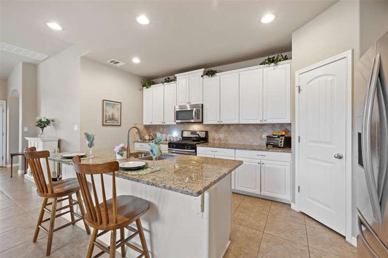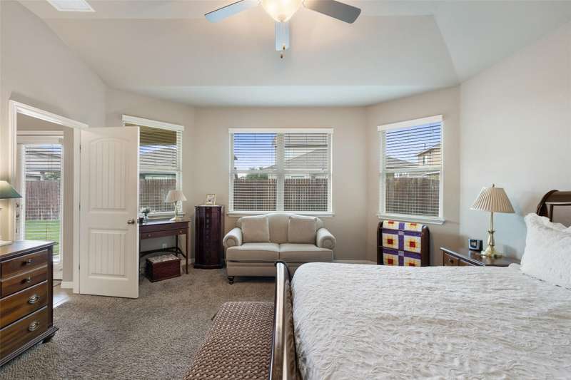 Tucked into a quiet community just minutes from downtown Austin, this Meritage-built home offers comfort, space, and thoughtful upgrades in a layout that lives larger than expected. With multiple living and dining areas, a first-floor primary suite, and four walk-in closets, and cultured marble counters in the bathrooms...this home was designed for functionality without sacrificing charm.