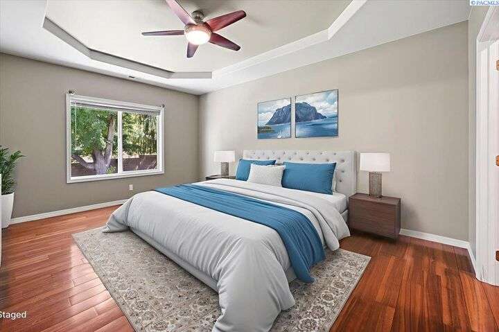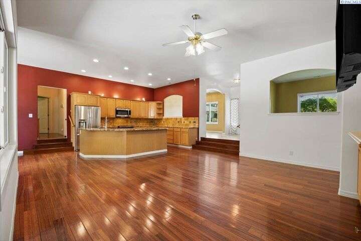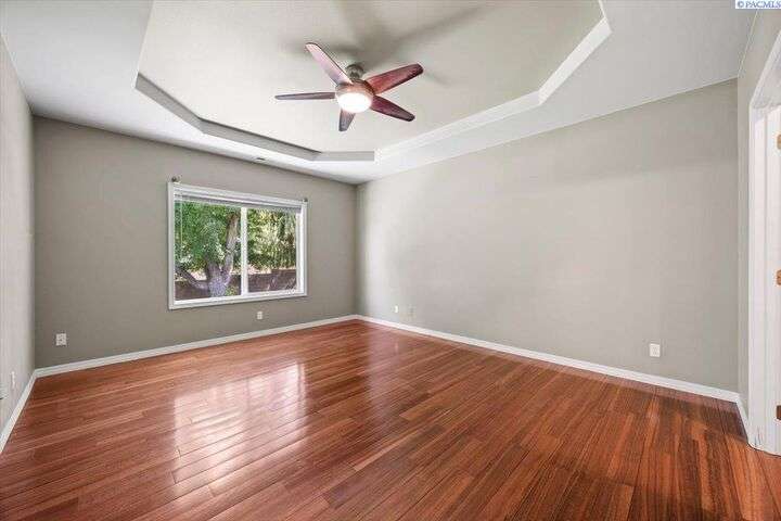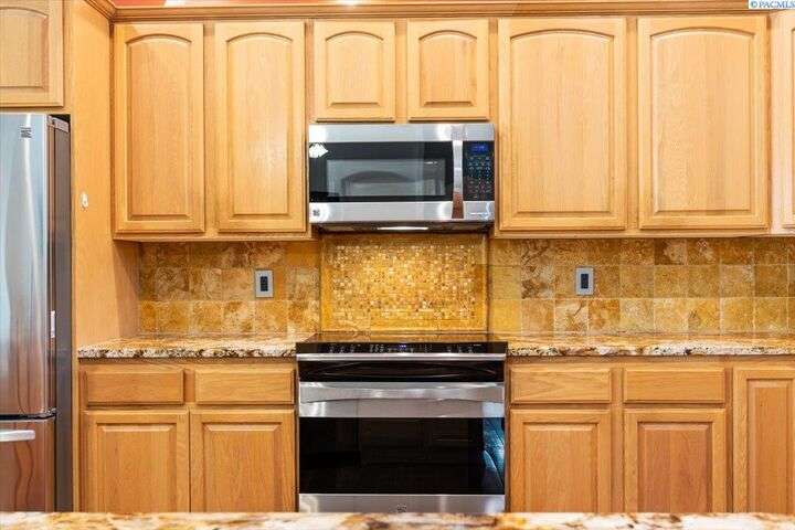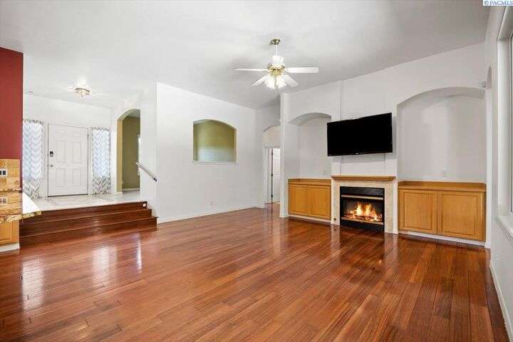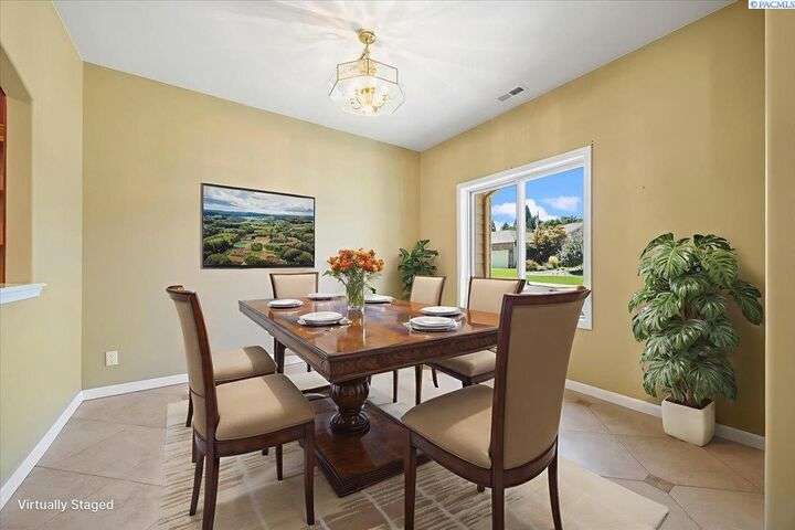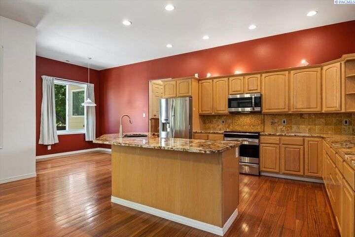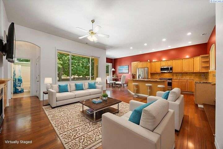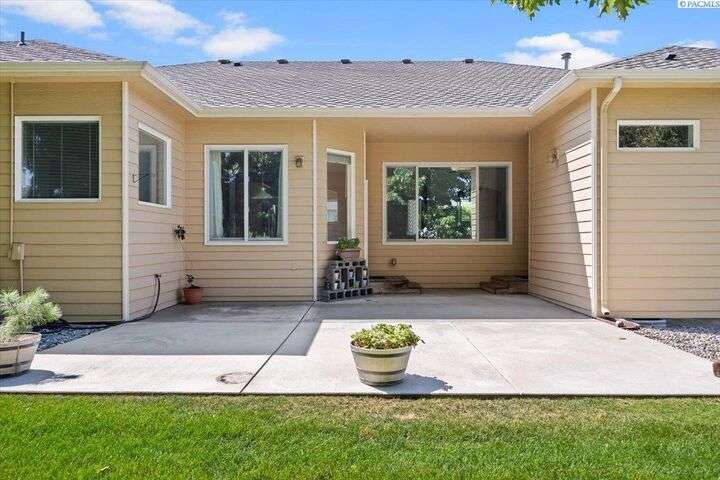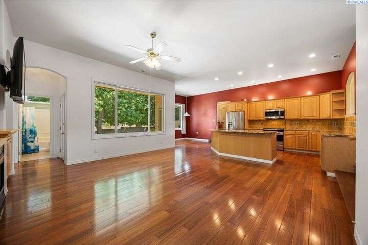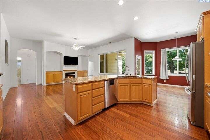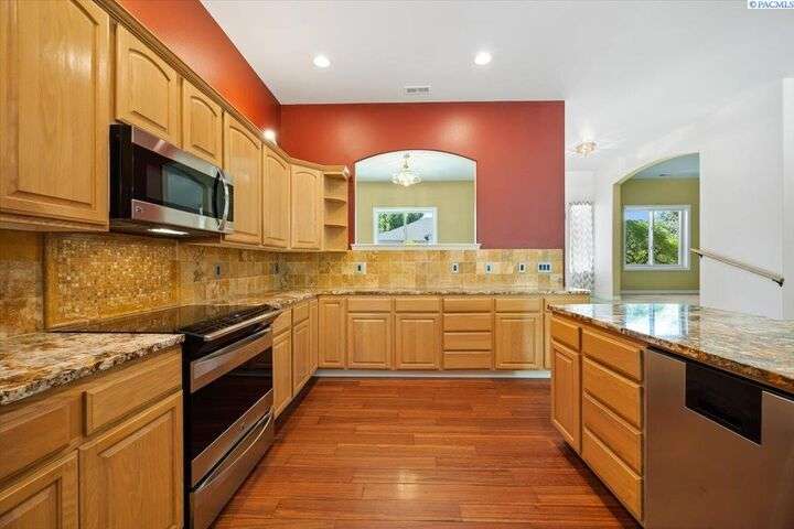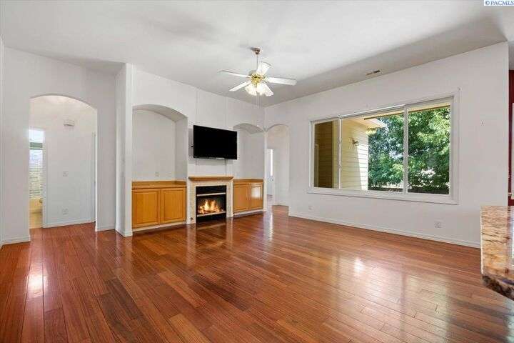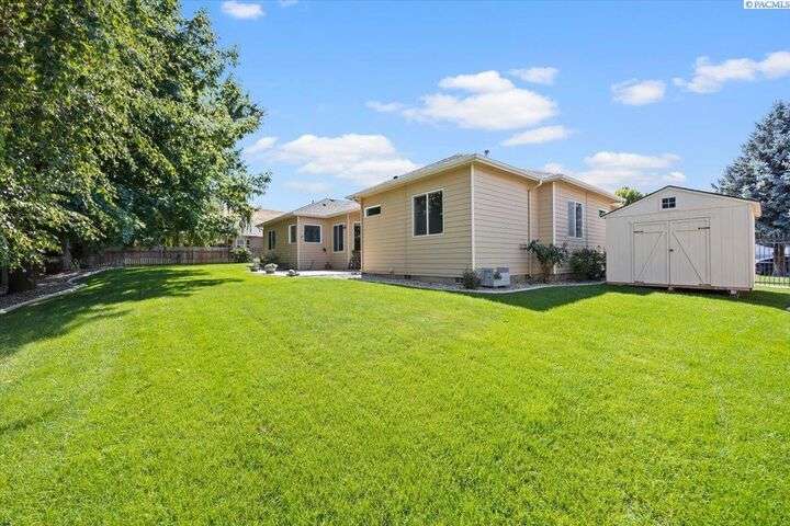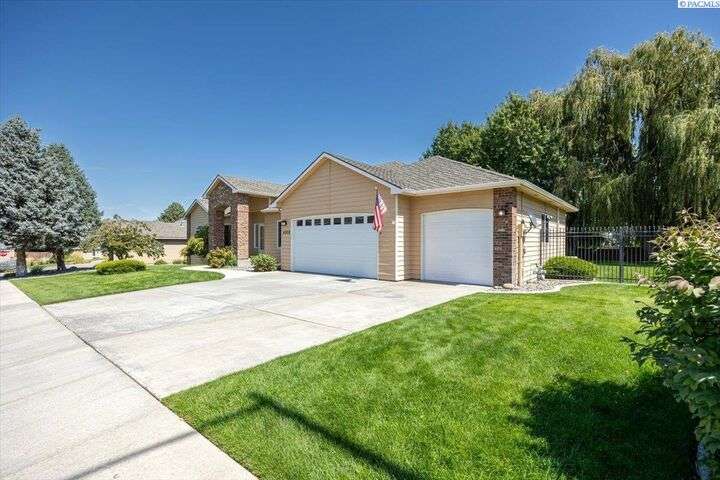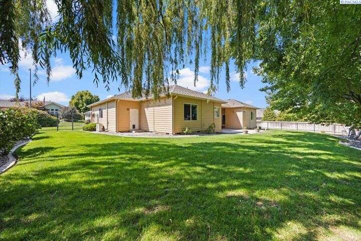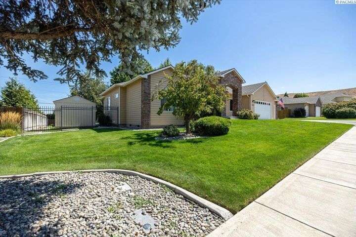 MLS# 286767 Located in desirable Canyon Lakes Community. Beautiful curb appeal home, with brick accents. This stunning four-bedroom, three-bath home features a thoughtful split bedroom concept, with three of the bedrooms each having their own full bathroom. The kitchen is a chef’s dream, boasting ample counter space with granite counters, beautiful tile backsplash, and newer stainless appliances. The home also includes new Anderson windows! There is an eat-in dining area, with beautiful views of the professional landscaped backyard. A formal dining room for entertaining guests is spacious and full of natural light. A den is located at the front of the home that is perfect for working from home or a playroom for kids. This open concept rambler home features all wood and tile flooring throughout. The spacious living room includes a gas fireplace with dual cabinets, and beautiful windows. To keep the air flowing, ceiling fans are found throughout the home. Enjoy the beautiful tile entry, raised ceilings, and the peace of mind that comes with a newer HVAC system and water heater. The master suite is a true retreat, complete with dual sinks, a walk-in shower, and a large jacuzzi tub, as well as a spacious walk-in closet. The laundry room includes counter space and a sink. Steps away is the access to the oversized garage. Outside, you’ll find a storage shed and plenty of shade from mature trees, professional landscaped yards, open patio with two entrances, completely fenced, along with gutters installed for added convenience. Newer paint and garage door completes this amazing home! Don't miss seeing this hidden gem.
