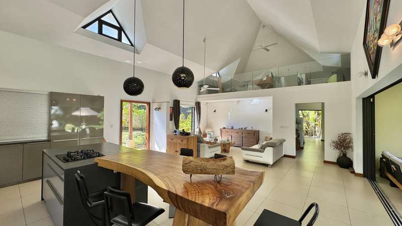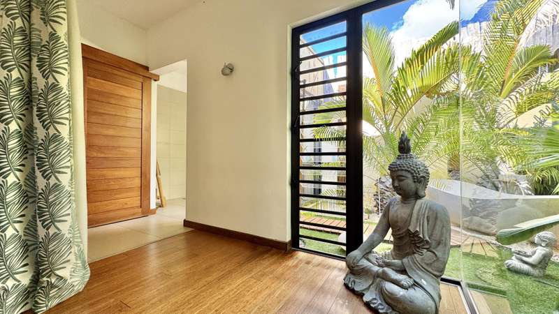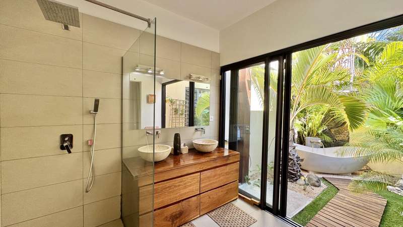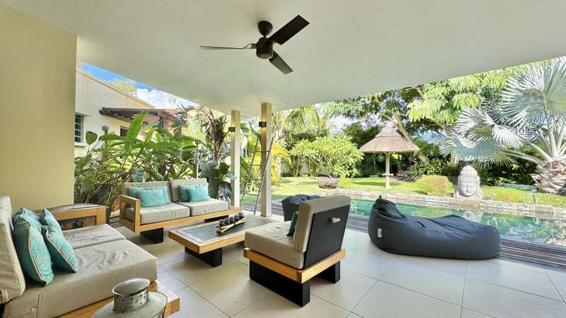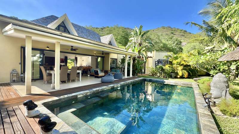 Nestled in the heart of Black River, bordering the Black River Gorges and the vibrant La Balise Marina, this exquisite Balinese-inspired villa offers an unparalleled lifestyle of luxury and tranquility. Spanning nearly 250 m² on a lush plot of over 1000 m², this single-story residence with an open mezzanine is a haven of serenity, perfect for those seeking a tropical escape. Step inside and be captivated by the open-plan living space, where soaring ceilings and strategically placed sliding glass doors seamlessly blend indoor and outdoor living. The American kitchen flows effortlessly into the living and dining areas, creating an ideal space for entertaining. Three en-suite bedrooms provide private sanctuaries for rest and relaxation. Two of the bedrooms feature enchanting outdoor showers, allowing you to connect with nature's elements. The main suite is a true masterpiece, boasting an opulent en-suite bathroom complete with a luxurious outdoor bathtub. The expansive verandah, featuring additional lounge and dining areas, extends the living space outdoors, overlooking the inviting slate pool, charming kiosk, and lush, evergreen garden. A generous barbecue area promises memorable gatherings with family and friends. This exceptional villa also offers a host of practical amenities, including a laundry room, a garden shed for storage, and an independent studio with a bathroom, ideal for guests or as a private workspace. Private parking and an electric gate ensure security and peace of mind. The new owners will enjoy a range of amenities within the complex, including a communal pool house, professionally maintained common areas (thanks to the resident syndic), lush gardens, and convenient visitor parking. Available to foreign investors, this is a rare opportunity to own a piece of paradise in one of Mauritius' most sought-after locations. Enjoy the privacy of your own tropical haven while remaining close to the region's diverse activities, amenities, and attractions. This villa is more than just a home; it's a lifestyle. MAURITIAN RESIDENCY UPON PURCHASE. Contact DIANE WATKINS - Property Consult today for a viewing!