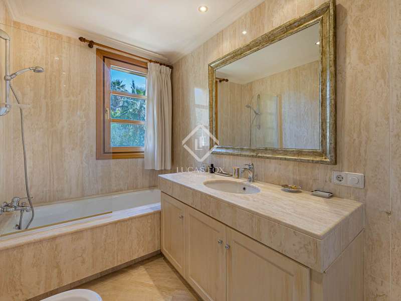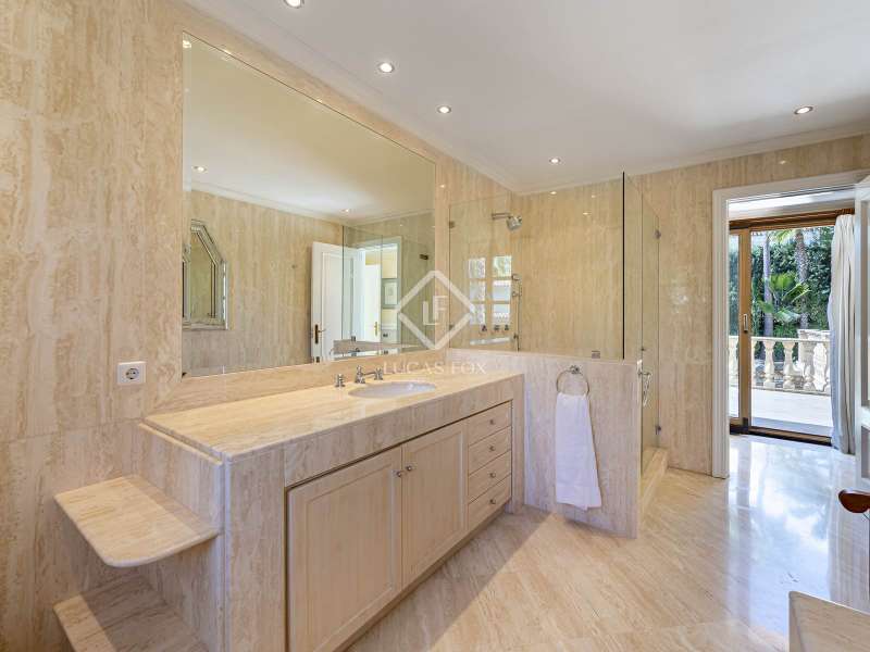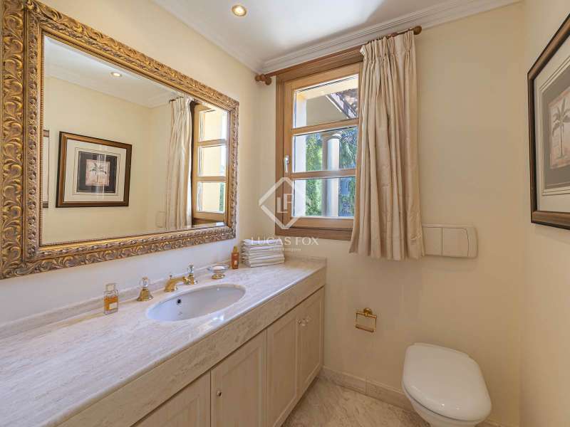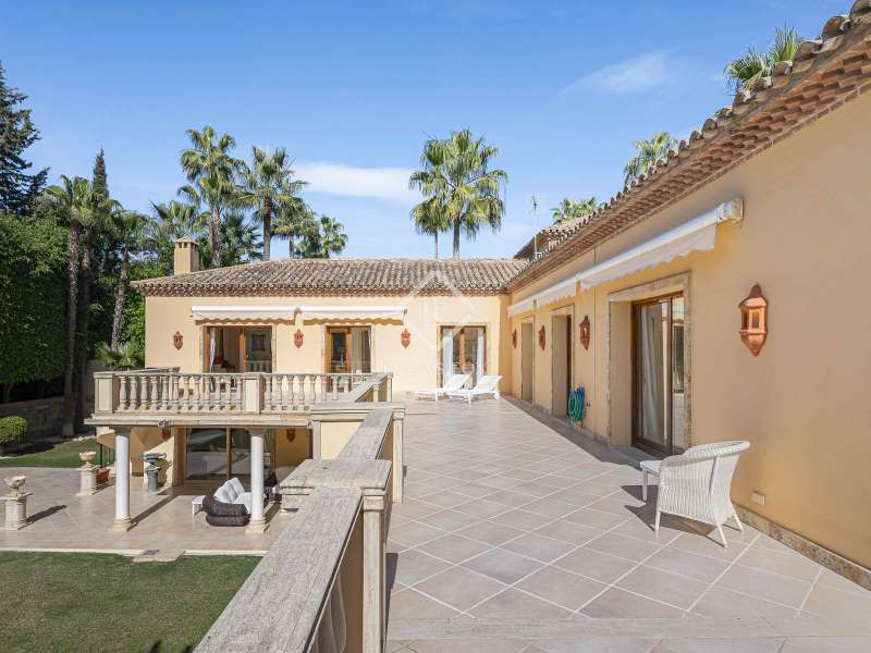 This villa has been designed to meet the highest standards of comfort and style, with every detail carefully considered to enhance your living experience. Upon entering the villa, we are greeted by an impressive foyer with marble floors and a grand staircase, setting the tone for the refined elegance throughout. The main floor features an expansive open-plan living and dining area, designed to be both luxurious and functional. The space is highlighted by a cosy fireplace. Floor-to-ceiling windows invite abundant natural light and offer direct views of the beautifully landscaped garden and the sparkling pool. The extensive covered terrace, complete with a bar and dining area, extends the living space outdoors. Adjacent to the kitchen is a separate entrance leading to the laundry area, an office, and a private guest suite with its own bathroom, offering privacy and comfort for visitors. Upstairs, the villa hosts three bright and spacious bedrooms, including the grand main suite, which features an en-suite bathroom and a walk-in wardrobe. Each bedroom offers access to a private balcony with retractable awnings, perfect for enjoying Marbella's enviable climate and breathtaking sunsets. The lower level of the villa offers great potential for customization, featuring a multipurpose area, sauna, bathroom, ample storage space, and staff quarters. This versatile floor is an ideal blank canvas for creating bespoke spaces such as a home gym, entertainment room, or cinema. With its modern design, prime location, and premium features, this villa is the perfect choice for anyone seeking a luxurious lifestyle on the Costa del Sol. Please contact us for further information.