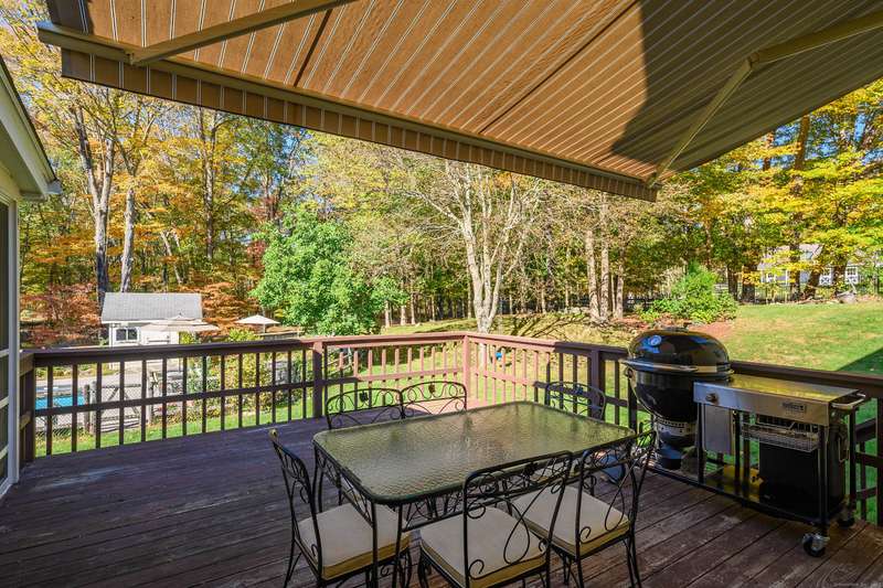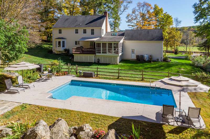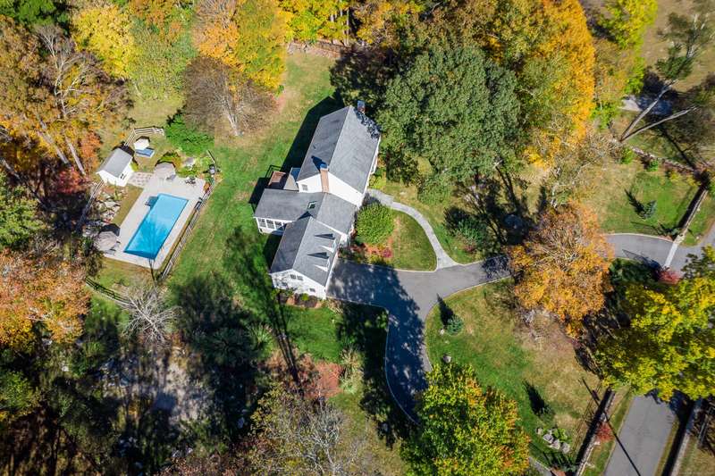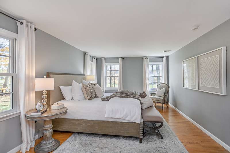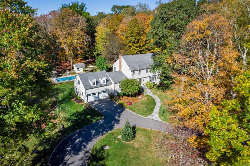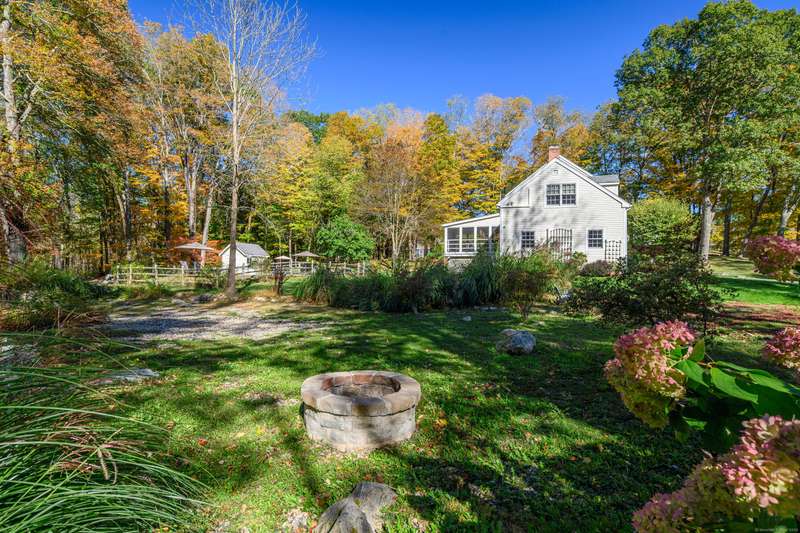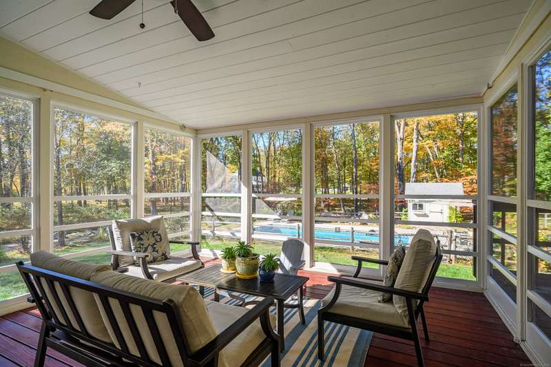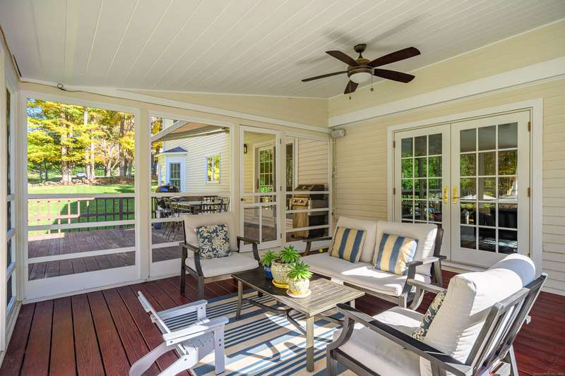 Quintessential Connecticut. Drive past estates on a country lane to be greeted by stone pillars, iron gates, professionally designed stone walls & a Belgian blocked lined circular driveway. An unparalleled setting of mature trees & a sweeping pastoral view just across the way. Step inside to discover a sophisticated yet relaxed country retreat ideal for weekend getaways or year-round living. Timeless character evidenced by bay windows with built-in seating, make the perfect spot for curling up with a book. Entertain friends in the step-down family room with a dramatic two-story brick fireplace where the sounds and smell of crackling wood can be enjoyed. Outdoor living takes place in the covered screened porch and adjacent spacious deck. Head upstairs to find a worthy primary suite which embraces a professionally designed walk-in dressing room/closet with built-ins leading to a designer bath. Do not miss the 5th bedroom over the garage, hosting a full bath, ideal for in-laws or weekend