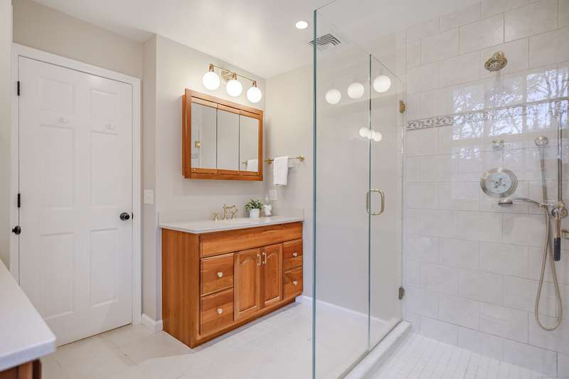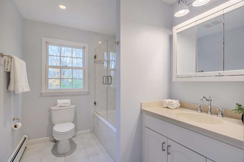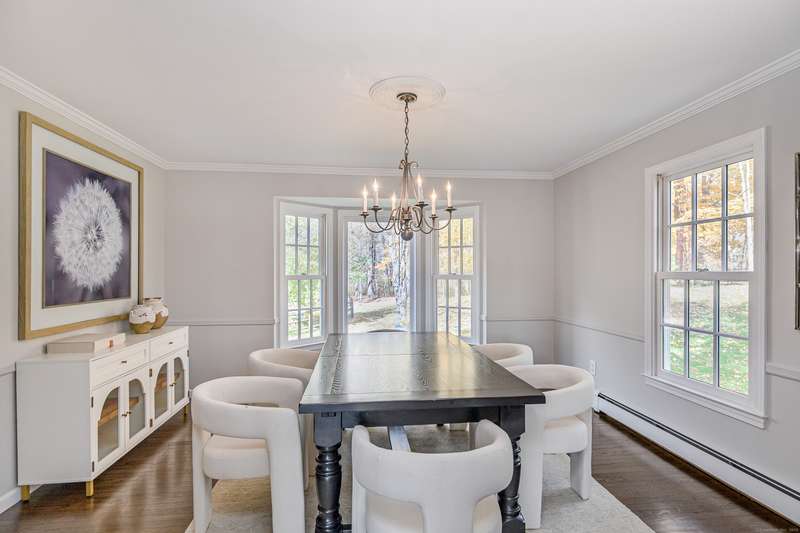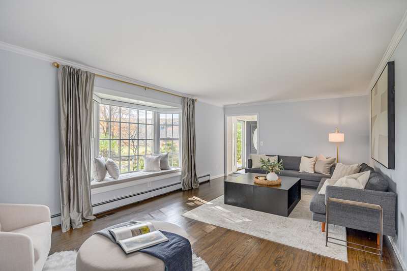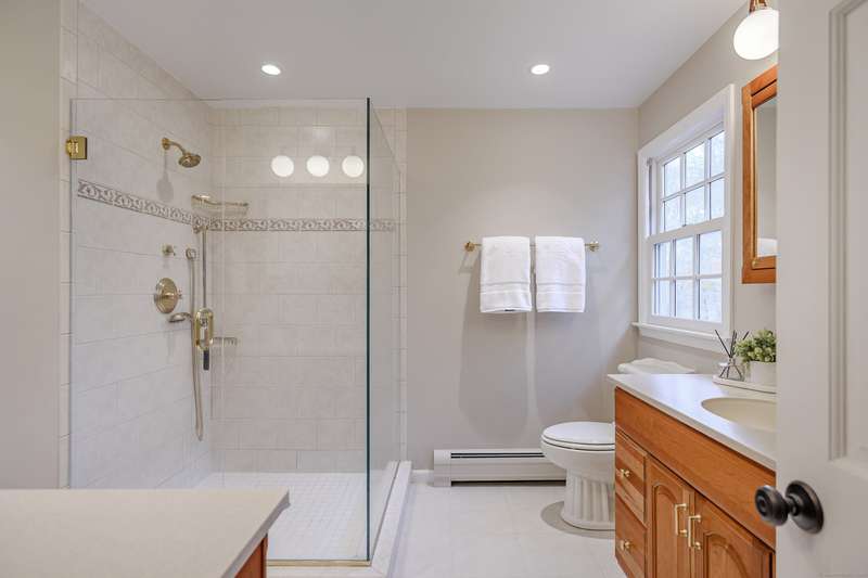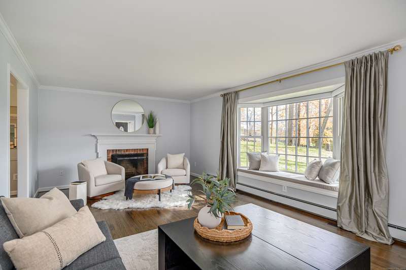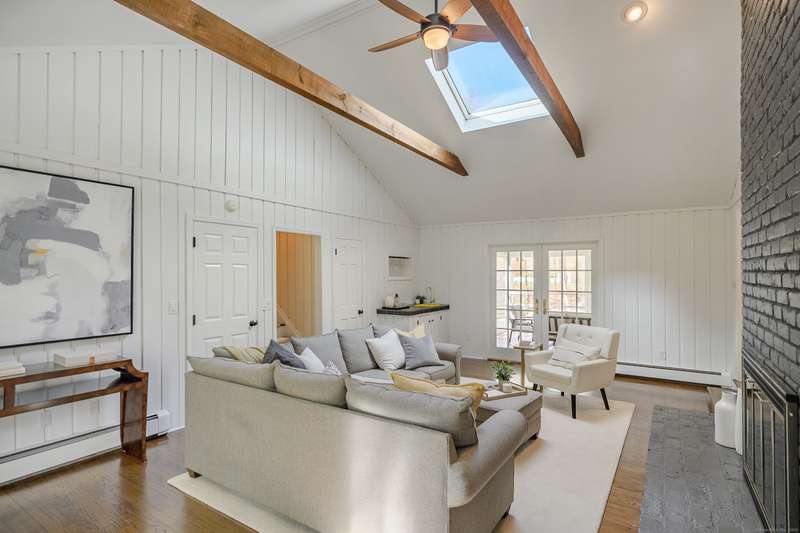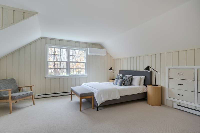 Quintessential Connecticut. Drive past estates on a country lane to be greeted by stone pillars, iron gates, professionally designed stone walls & a Belgian blocked lined circular driveway. An unparalleled setting of mature trees & a sweeping pastoral view just across the way. Step inside to discover a sophisticated yet relaxed country retreat ideal for weekend getaways or year-round living. Timeless character evidenced by bay windows with built-in seating, make the perfect spot for curling up with a book. Entertain friends in the step-down family room with a dramatic two-story brick fireplace where the sounds and smell of crackling wood can be enjoyed. Outdoor living takes place in the covered screened porch and adjacent spacious deck. Head upstairs to find a worthy primary suite which embraces a professionally designed walk-in dressing room/closet with built-ins leading to a designer bath. Do not miss the 5th bedroom over the garage, hosting a full bath, ideal for in-laws or weekend