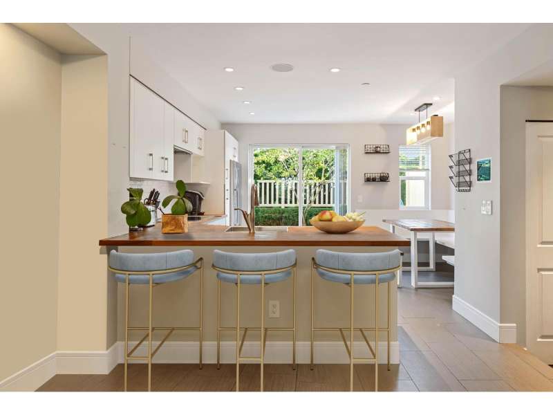 Welcome to Pepperwood! This fully automated & updated 2 bdrm+den luxury townhome has undergone over $60k in renos making it completely move in ready. Every detail has been carefully designed for modern living. The highlights are endless: exotic engineered H/W floors thru-out, complimented by energy-efficient radiant in-floor heating for year-round comfort. The deluxe open kitchen has been beautifully renovated with stunning countertops, shaker-style cabinetry & S/S appliances. Adjacent to the kitchen, a large custom built-in dining area is perfect for gatherings/entertaining. Additional upgrades incl new designer lighting, modern tile work & striking glass railings that elevate the staircase into a showpiece. Step outside to your private walkout backyard ideal for entertaining outdoors. (id:58403)