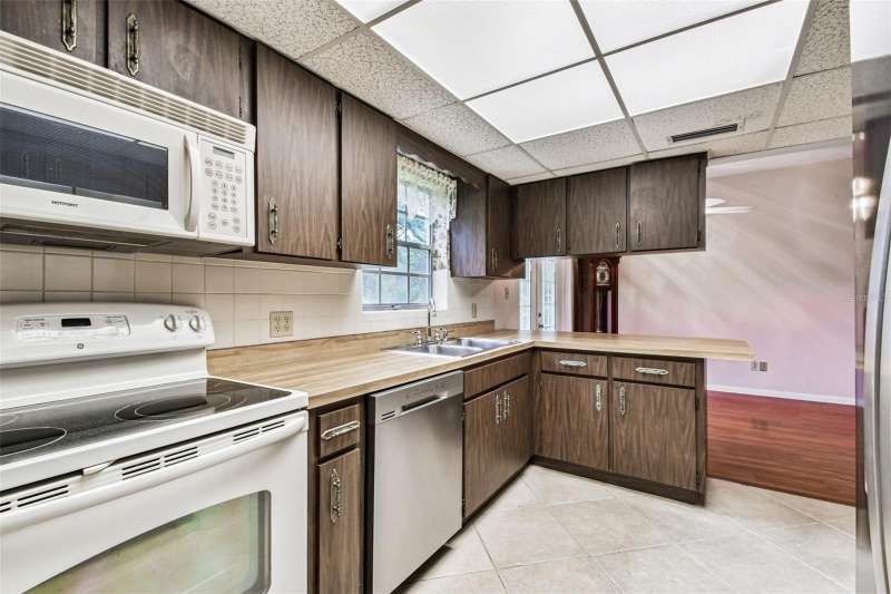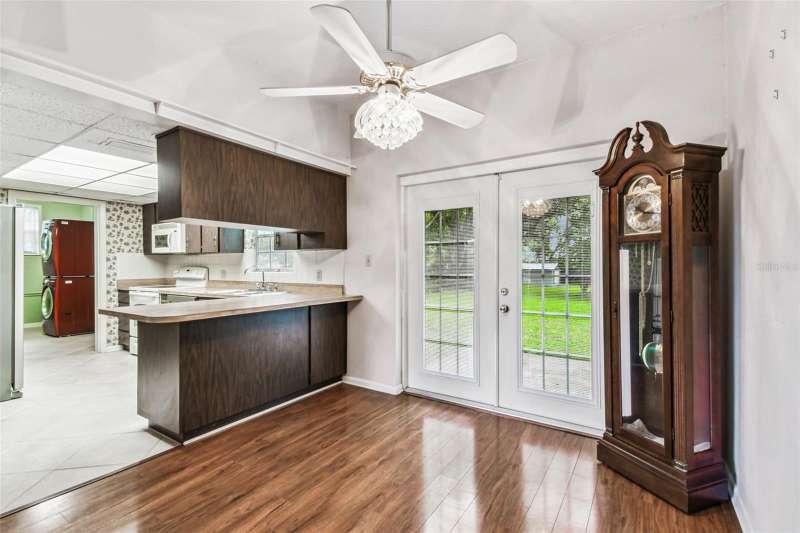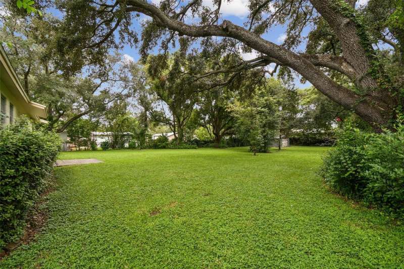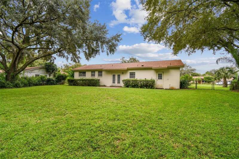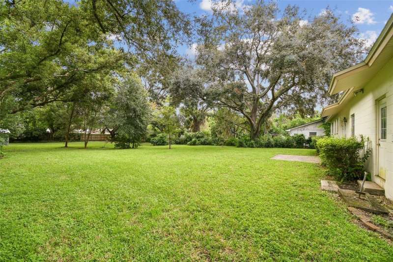 Under contract-accepting backup offers. Welcome to your new home in Forest Hills! This 3 bedroom, 2 bathroom home offers 1,262 sq. ft. of living space on an amazing ½-acre lot shaded by beautiful, mature oak trees. A true diamond in the rough, this property is full of potential and ready for you to transform into your dream home! Inside, you’re greeted by a sun-filled living room with gleaming laminate floors that flow seamlessly into the dining area — an inviting space for everyday living and entertaining. French doors open to the patio, creating a natural transition to outdoor living, ideal for hosting, gardening, or simply enjoying the serene, park-like setting. The kitchen includes a convenient bar for extra seating, while a perfectly placed window frames views of the amazing backyard. Just off the kitchen, a large laundry room provides plenty of storage and added functionality. The primary bedroom features a private bathroom and spacious closets. Warm hardwood floors make it a cozy retreat where you can relax after a long day. Each of the additional bedrooms also offers hardwood floors and generous closets, creating flexible spaces for family, guests, or a home office. The bathrooms still have the vintage tile work that allow you to integrate the original character with your own modernized features. The expansive backyard is more than large enough to add a separate mother in law suite or casita! The location is hard to beat — just a short walk to Babe Zaharias Golf Course with its Pro Shop, Clubhouse Restaurant, and community events. You’re also minutes from Busch Gardens, Lettuce Lake Park, ZooTampa, USF, and just a quick drive to Downtown Tampa. Don’t miss this opportunity to make a Forest Hills gem your own. Schedule your private showing today!
