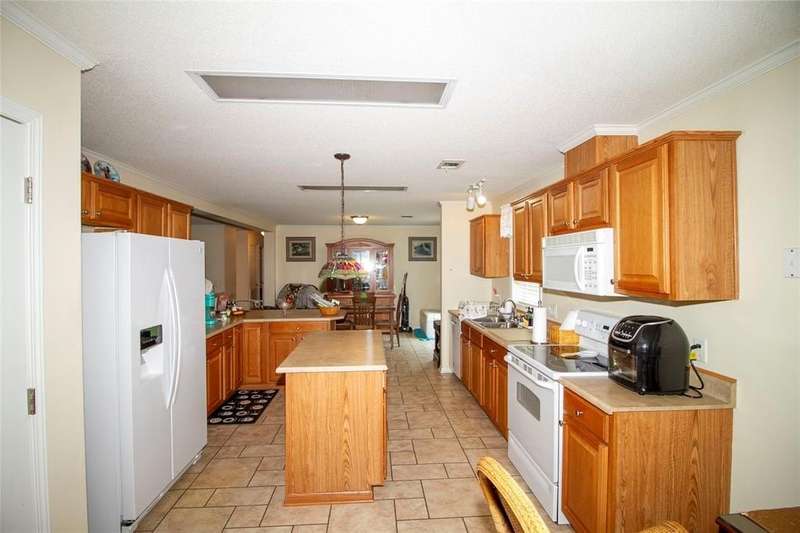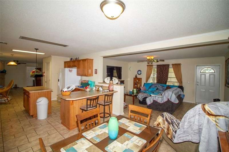 Hard to Find...lots this size and this close to town! Huge 4 bedroom, 2 bath MODULAR home sitting on just over 6 acres. The home sits back away from the street, with a winding gravel driveway. There is a 2 car carport out front. The large covered front deck is a great place to enjoy your morning coffee. As you enter the home, you will be in one of the living areas. Three of the bedrooms and a bathroom will be to the left. One the right you have a nice ding area, the kitchen with real wood cabinets, and a nice breakfast bar and an island. The second living area is on the other side of the kitchen, an the utility room is at that end of the home. The primary bedroom is HUGE, it is approximately 15' x 30' with a large walk-in closet and a nice primary bathroom. The lot is just over 6 acres, and looks like a golf course. It has a good many shade trees, and is all accessible with a regular lawnmower. The owner had several outdoor lights installed around the property, and they are all on switches located inside the home in the utility room. The home is hooked up to and using Blanchard water. But there is also a water well on the property that could be used if you prefer. Check with your lender, they may have some special financing options for a 'Modular' home that are better than the normal manufactured home terms.