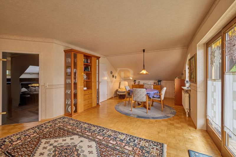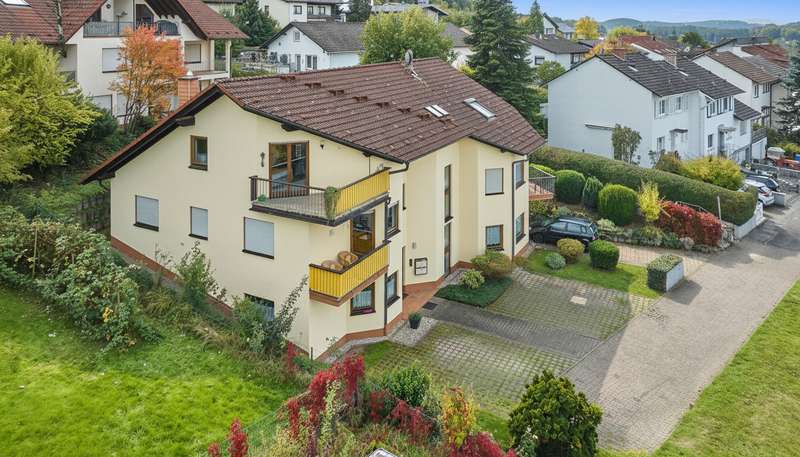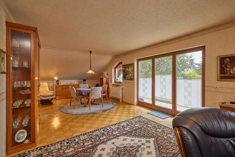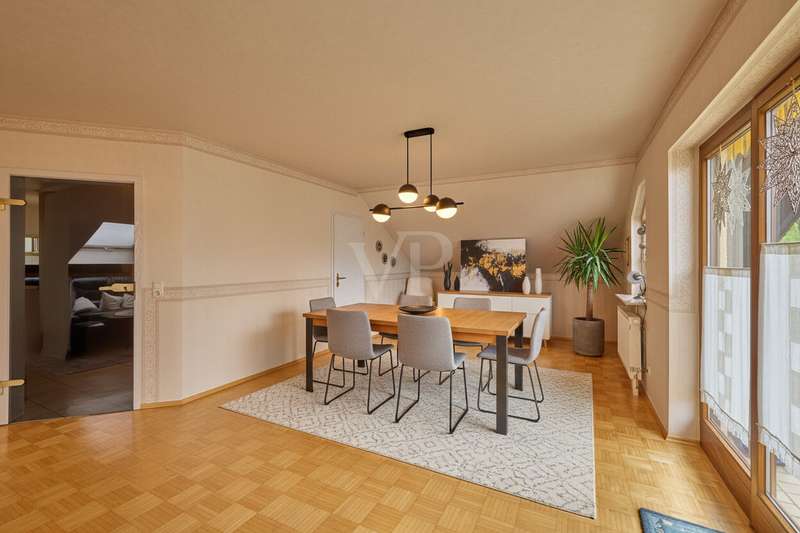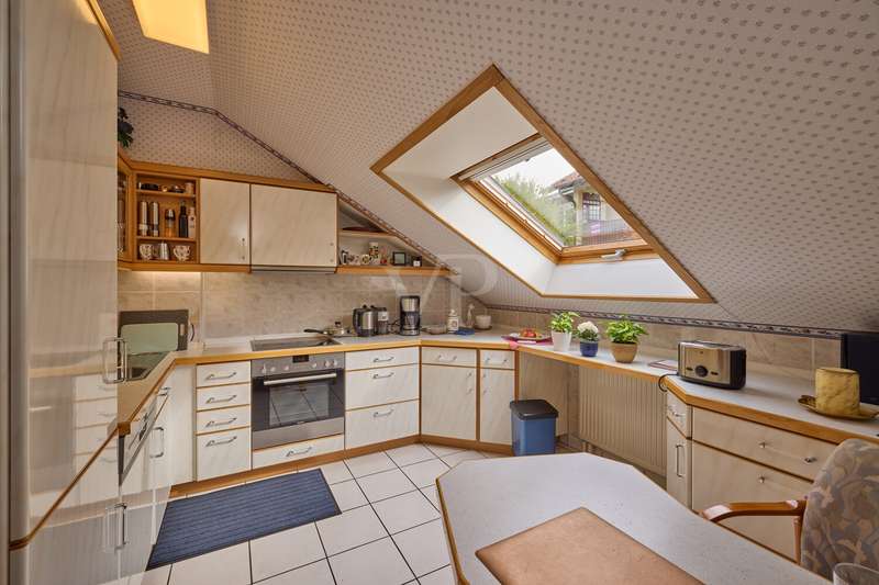 Stylishly maintained condominium with over 100 m² of living space in the heart of Bad König. This charming 3-room condominium combines a central location with a pleasant living ambience and sophisticated comfort. It is located on the 2nd floor of a well-kept four-party house in a quiet cul-de-sac - just a few minutes' walk from the most important facilities and stores for daily needs. With a generous living space of over 100 m², the apartment offers ideal conditions for couples or families. Generous window fronts provide a bright, friendly feeling of space and emphasize the pleasant living atmosphere. The spacious living room / dining room forms the heart of the apartment and invites you to spend relaxing hours. From here, you can access one of the two balconies, which offers an impressive view over Bad König. It is also possible to extend the living space by dividing it to create a further room if required - all connections and structural conditions are already in place. The kitchen is equipped with a bespoke fitted kitchen and offers sufficient space for all electrical appliances as well as a comfortable work surface. Two well-designed rooms open up flexible usage options - for example as a bedroom, children's room or work area - and also impress with their brightness and feel-good character. One of the two rooms also has access to the second balcony. The daylight bathroom is well maintained and offers both a shower and a bathtub. A large skylight with electric solar roller shutters provides plenty of natural light and a pleasant atmosphere. There is also a connection for a top-loading washing machine. The apartment has a separate cellar compartment that offers practical storage space. There is also a communal laundry room with a separate washer & dryer connection in the basement. A private parking space directly in front of the building rounds off the convenient overall offer - convenient parking included. If you are looking for a centrally located, yet quiet condominium with well-kept furnishings and a well thought-out room layout, this property is a convincing choice. Arrange a viewing appointment and discover the advantages of this attractive property on site.